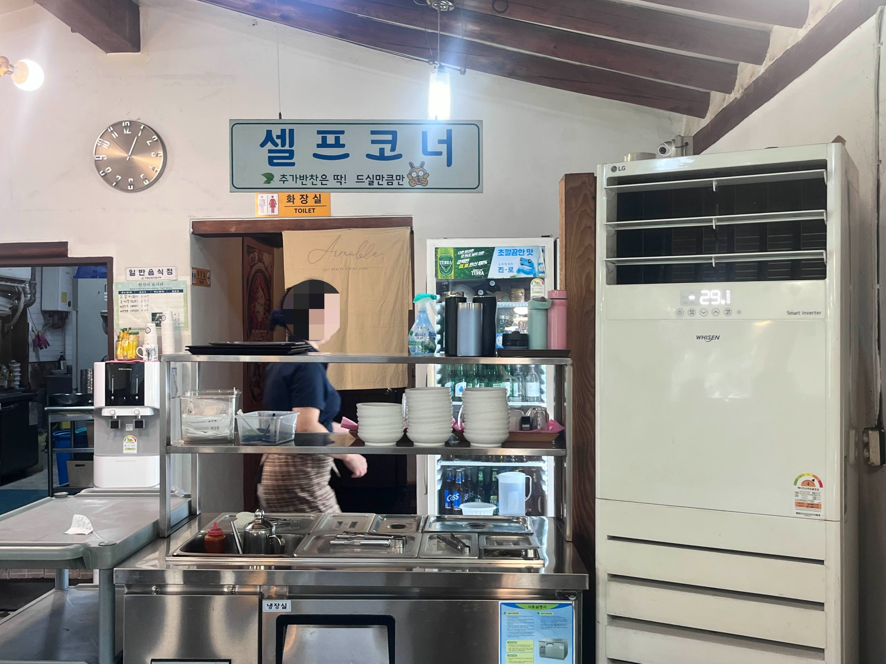 입구 쪽으로는 반찬을 가져다 먹을 수 있는 곳이 있고요,