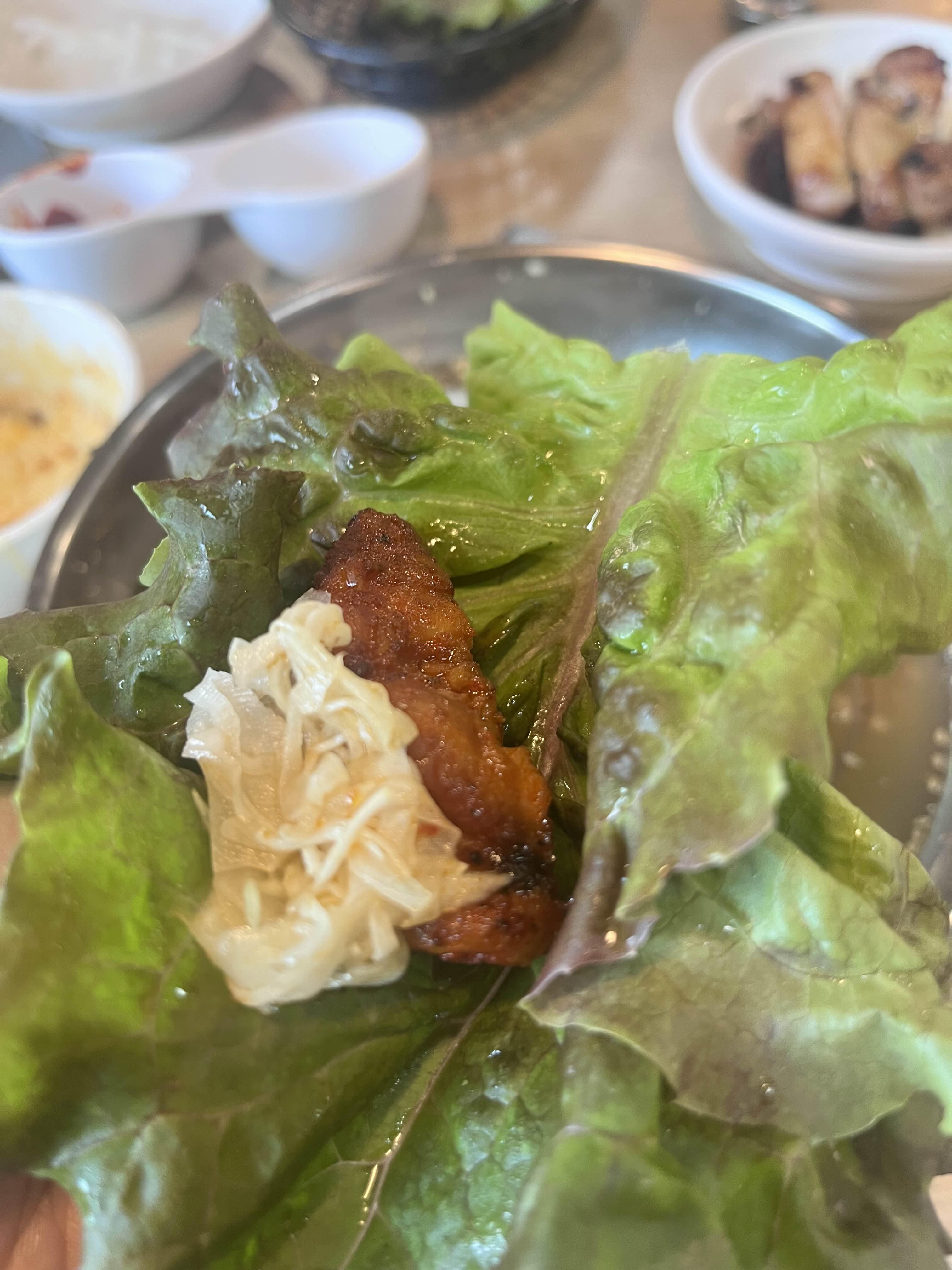상추쌈 싸서 닭갈비 먹으니 더 맛있었어요.