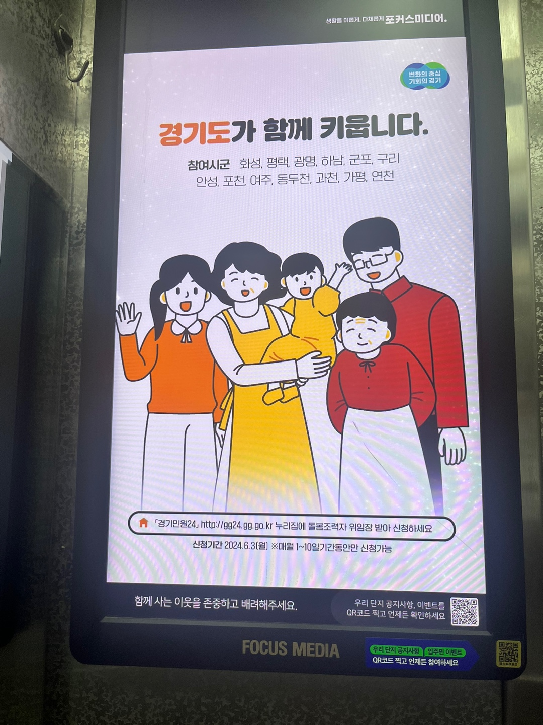 오늘 엘리베이터 스크린에서 경기도에서 하는 광고를 보게 되었어요.