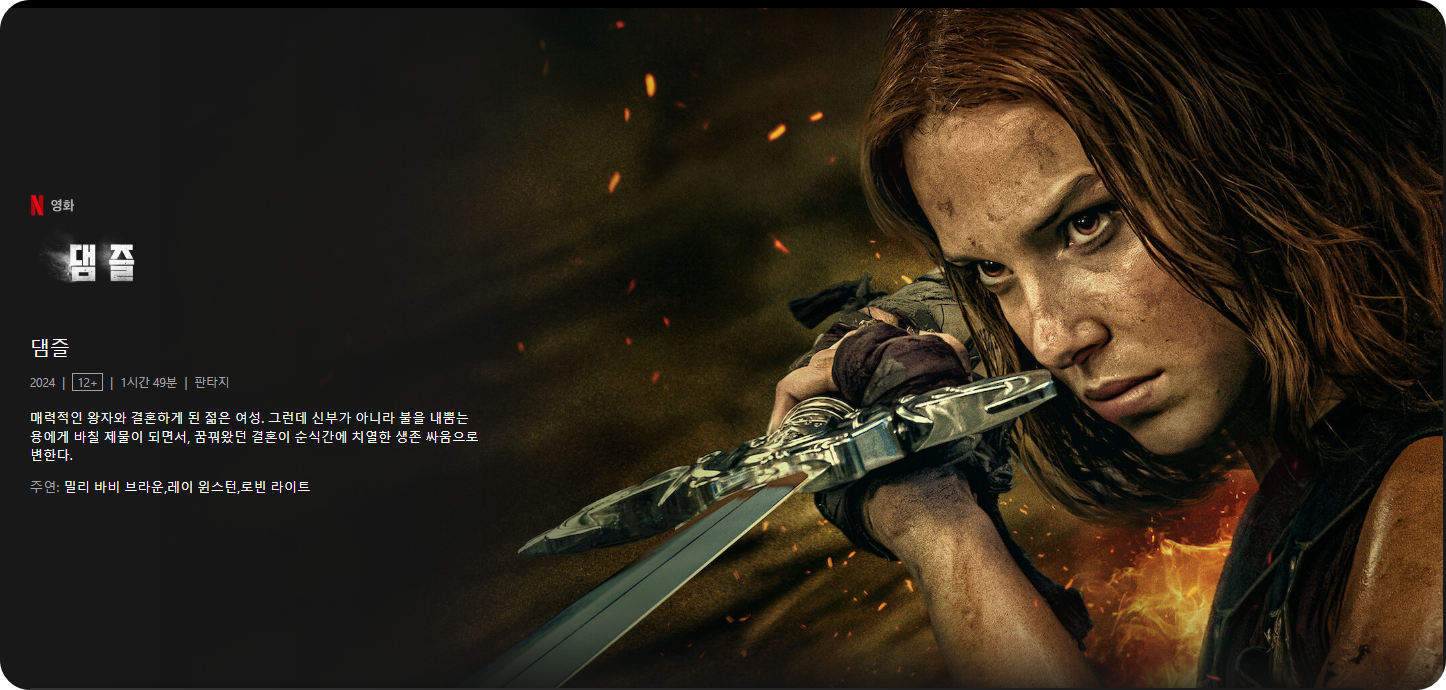 넷플릭스에서 최근 선보인 영화 '댐즐'이 인기 순위로 빠르게 올라오고 있습니다.