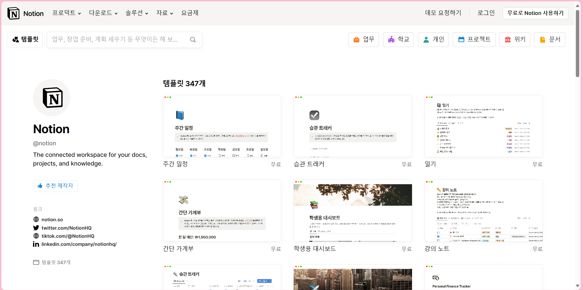 -노션 공식 웹사이트에서는 다양한 템플릿을 제공하고 있으므로, 이를 참고하거나 활용할 수 있습니다.