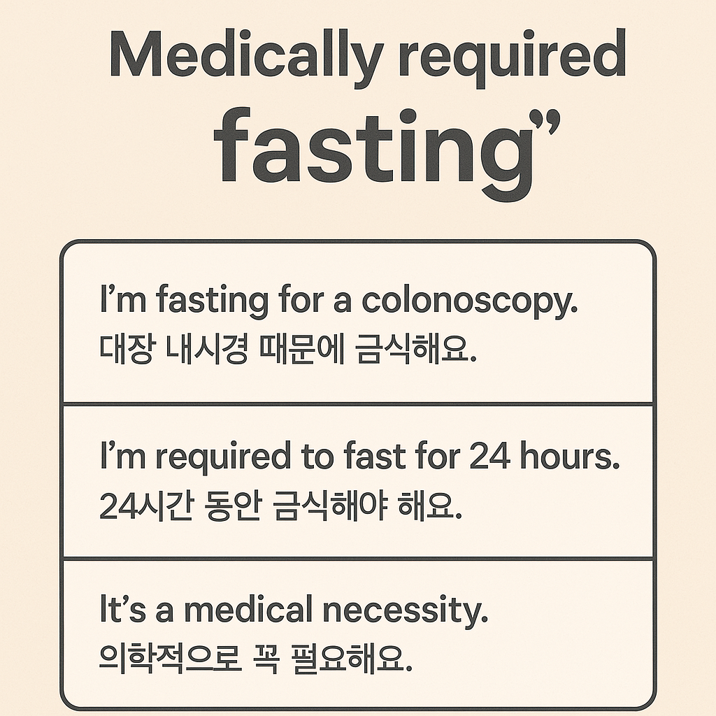 "금식 중이에요", "대장 내시경을 위해 아무것도 안 먹었어요" 를 영어로 정확히 말할 수 있다면 훨씬 수월해질 거예요.