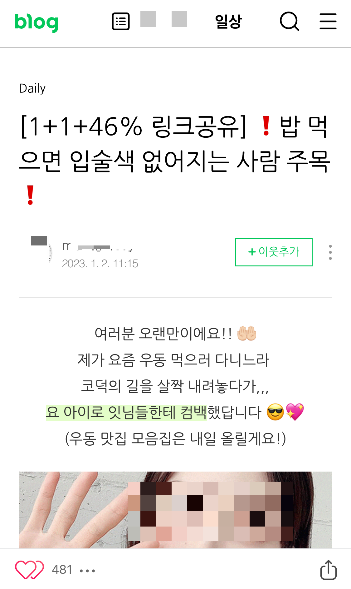 요즘엔 카톡에서도 개인 블로그 광고를 해주는 건가요?