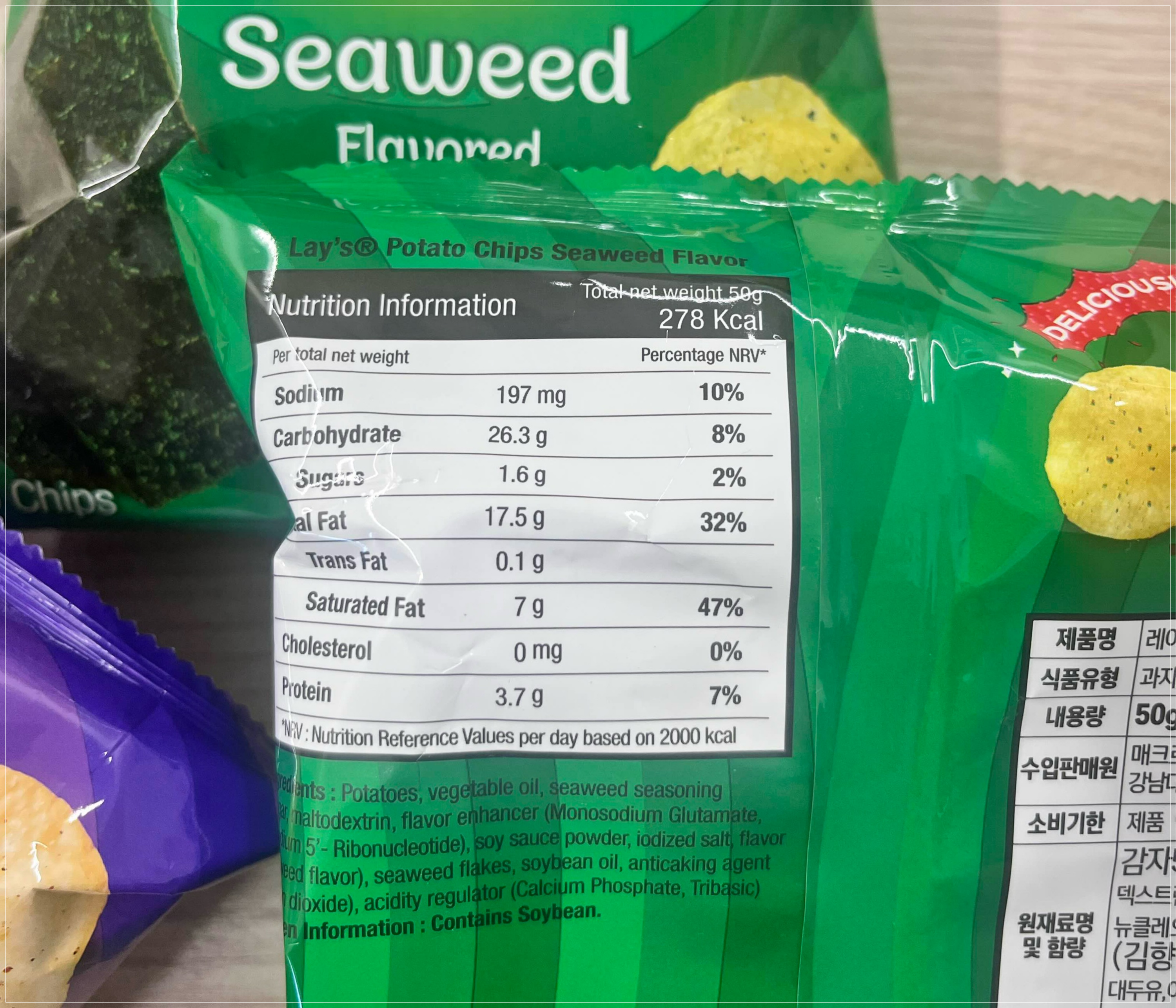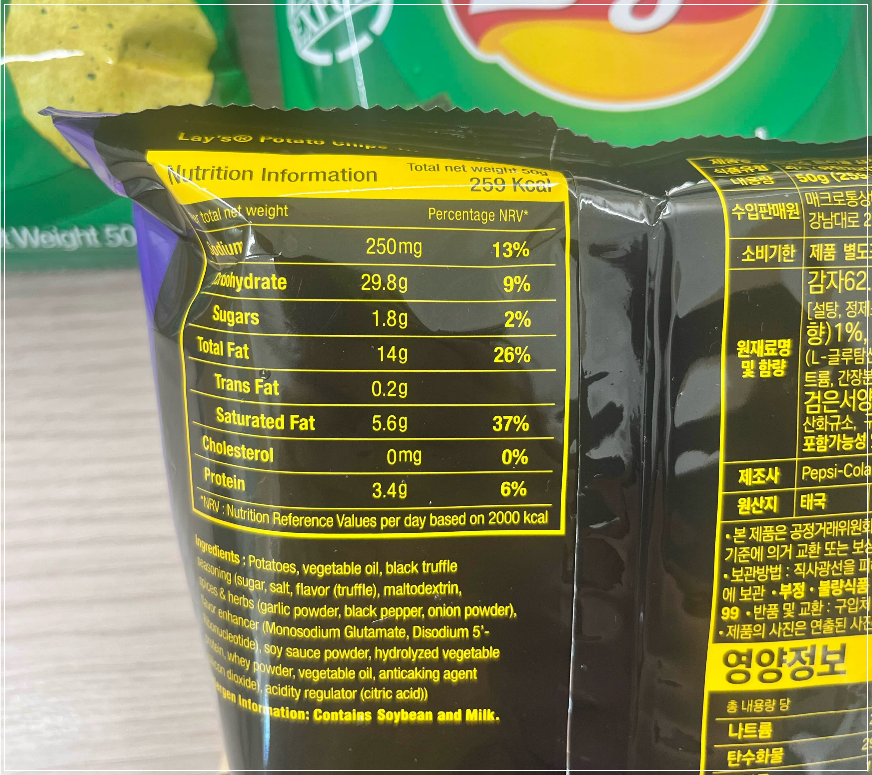 역시.. 감자칩 답게 칼로리 후덜덜하네요 ㅋㅋ