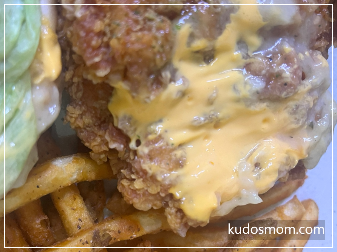 2배 업그레이드된 싸이패티는 육즙이 풍부하고 부드러웠습니다. 딥 프라이드된 겉 부분은 정말 바삭하고 좋았어요!