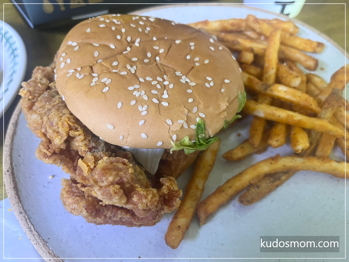 싸이버거 특유의 매콤한 닭다리살 패티는 어린이들한테는 좀 매울 수 있어요. 초3, 만 6살 저희 아이들에게도 아직은 매워요 ㅎㅎ