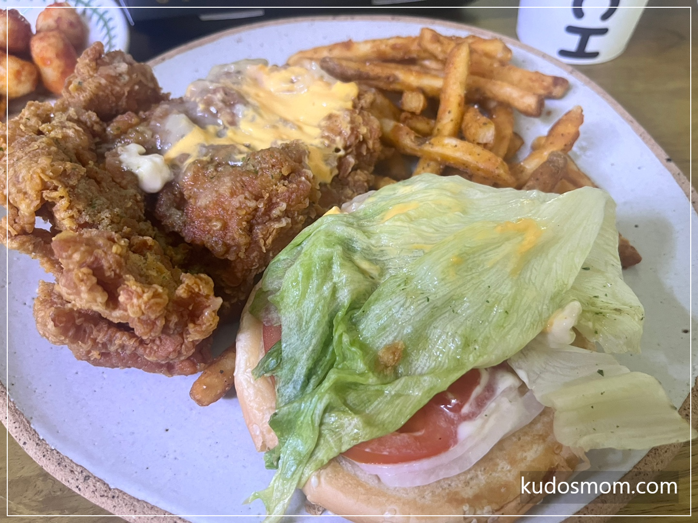 갈릭 치즈 소스와 싸이패티의 조합은 취향에 따라 다를 수 있지만, 양상추와 토마토의 양이 부족하다는 점은 개선이 필요하다고 생각합니다.