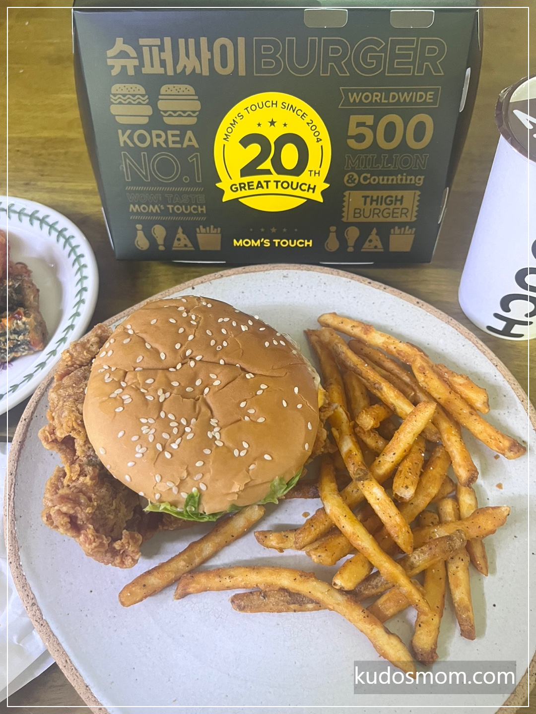 싸이버거 특유의 매콤한 닭다리살 패티는 어린이들한테는 좀 매울 수 있어요. 초3, 만 6살 저희 아이들에게도 아직은 매워요 ㅎㅎ