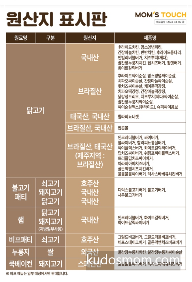 - 구매 방법: 맘스터치 매장, 온라인 앱 주문