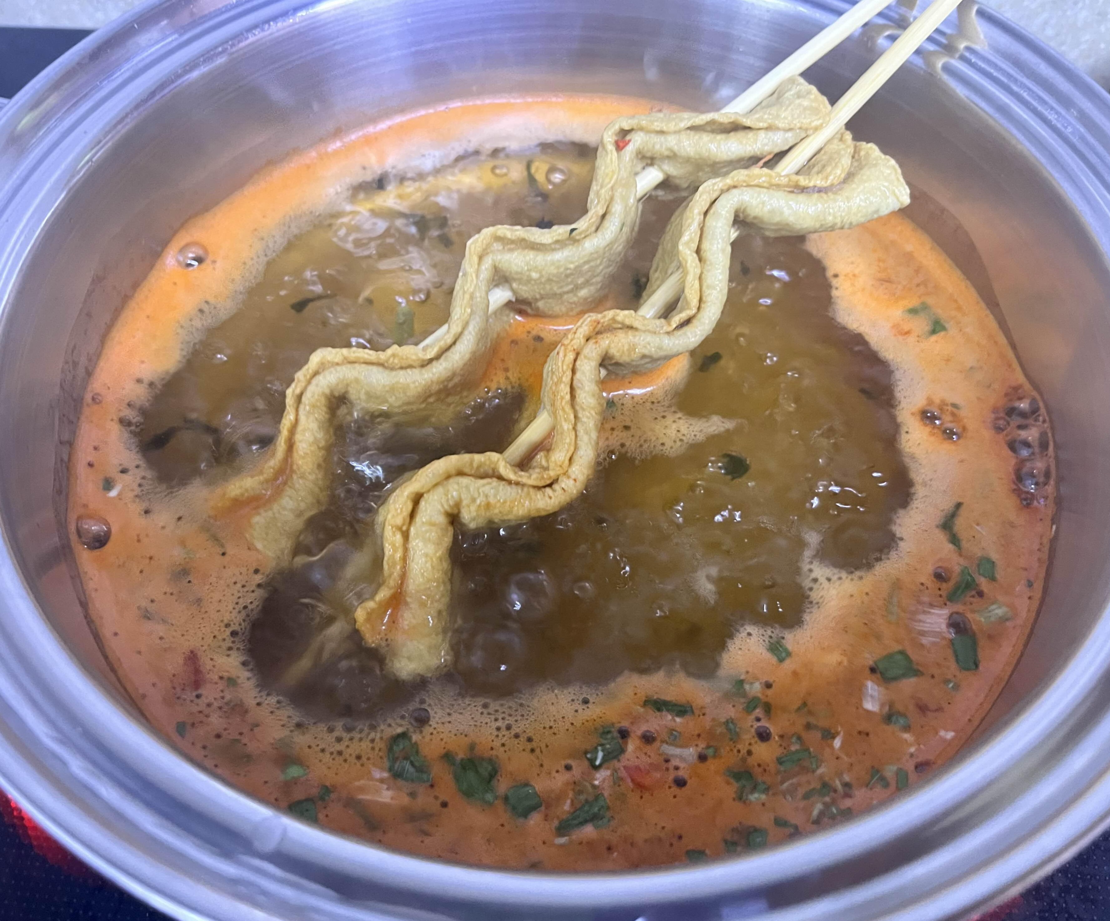 물이 끓어서 맵탱 스프 넣고 어묵부터 먼저 넣었어요.