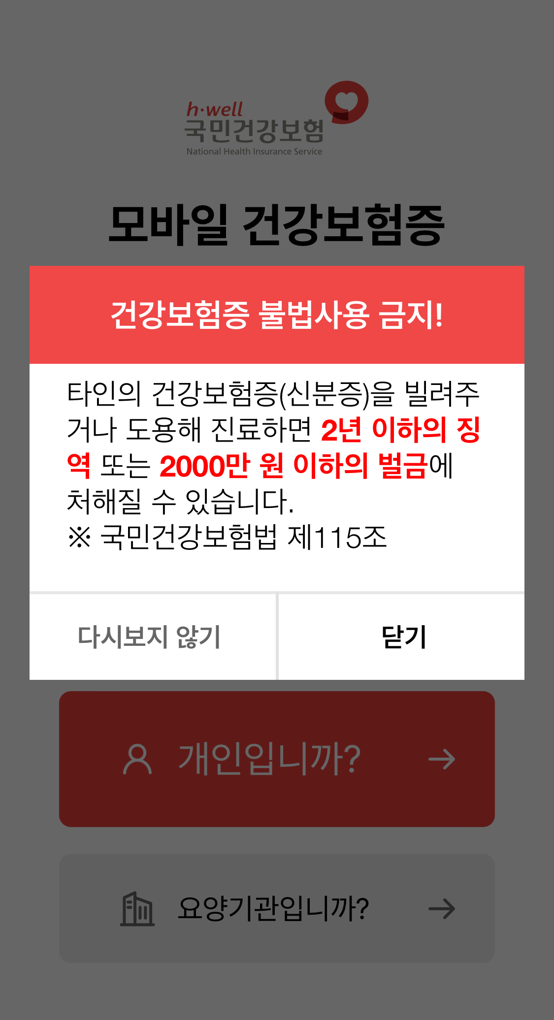 '모바일 건강보험증'을 검색하시고 설치해주세요.
