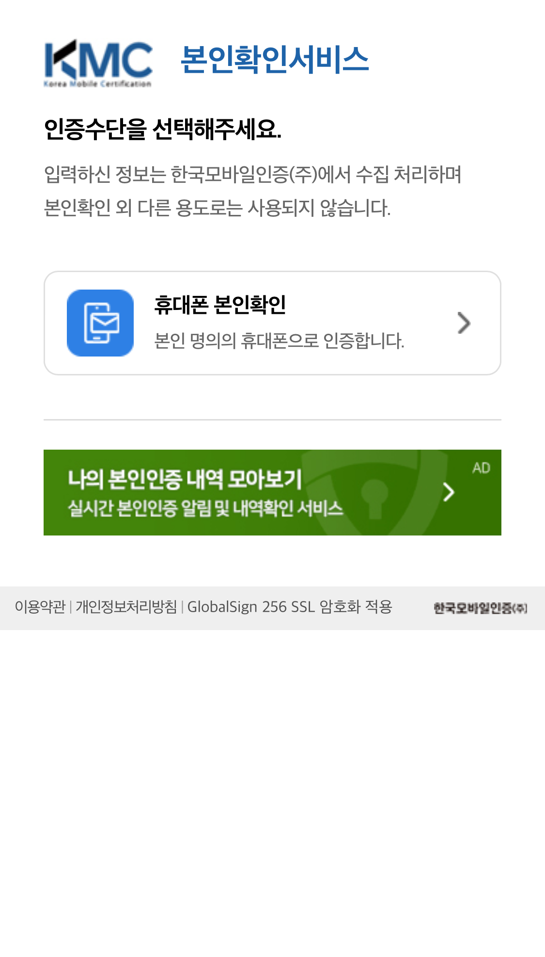 여기서 유의하실 점은 본인 명의의 기기로만 인증이 된다는 점이예요.