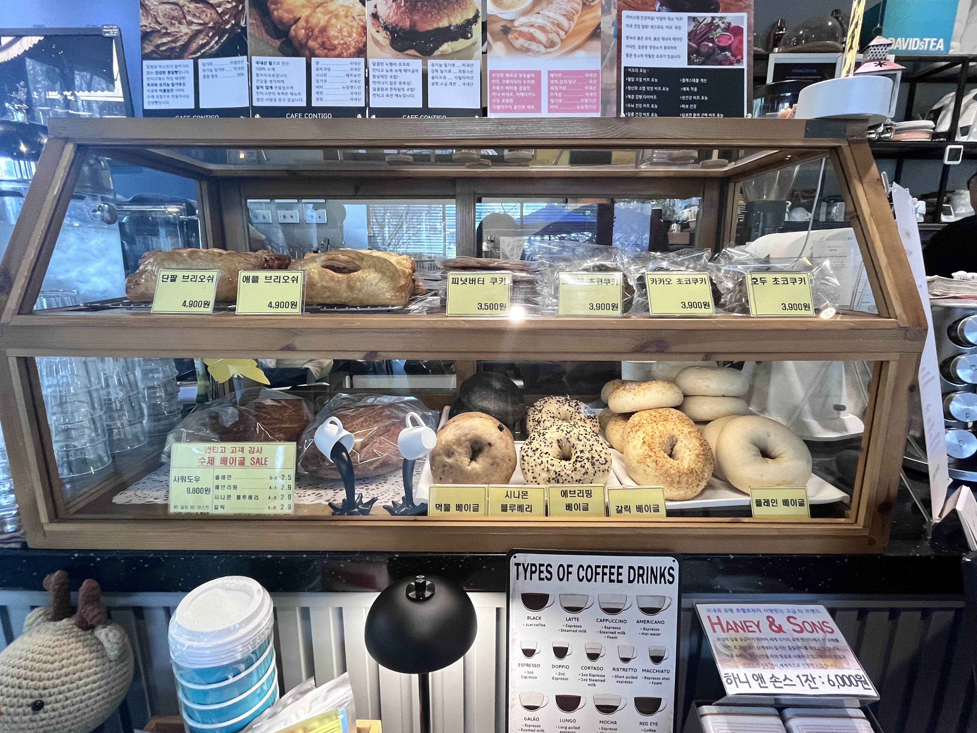 너무 잘 구워진 베이글이랑 컨티고만의 수제 크림치즈가 넘넘 잘 어울려요.