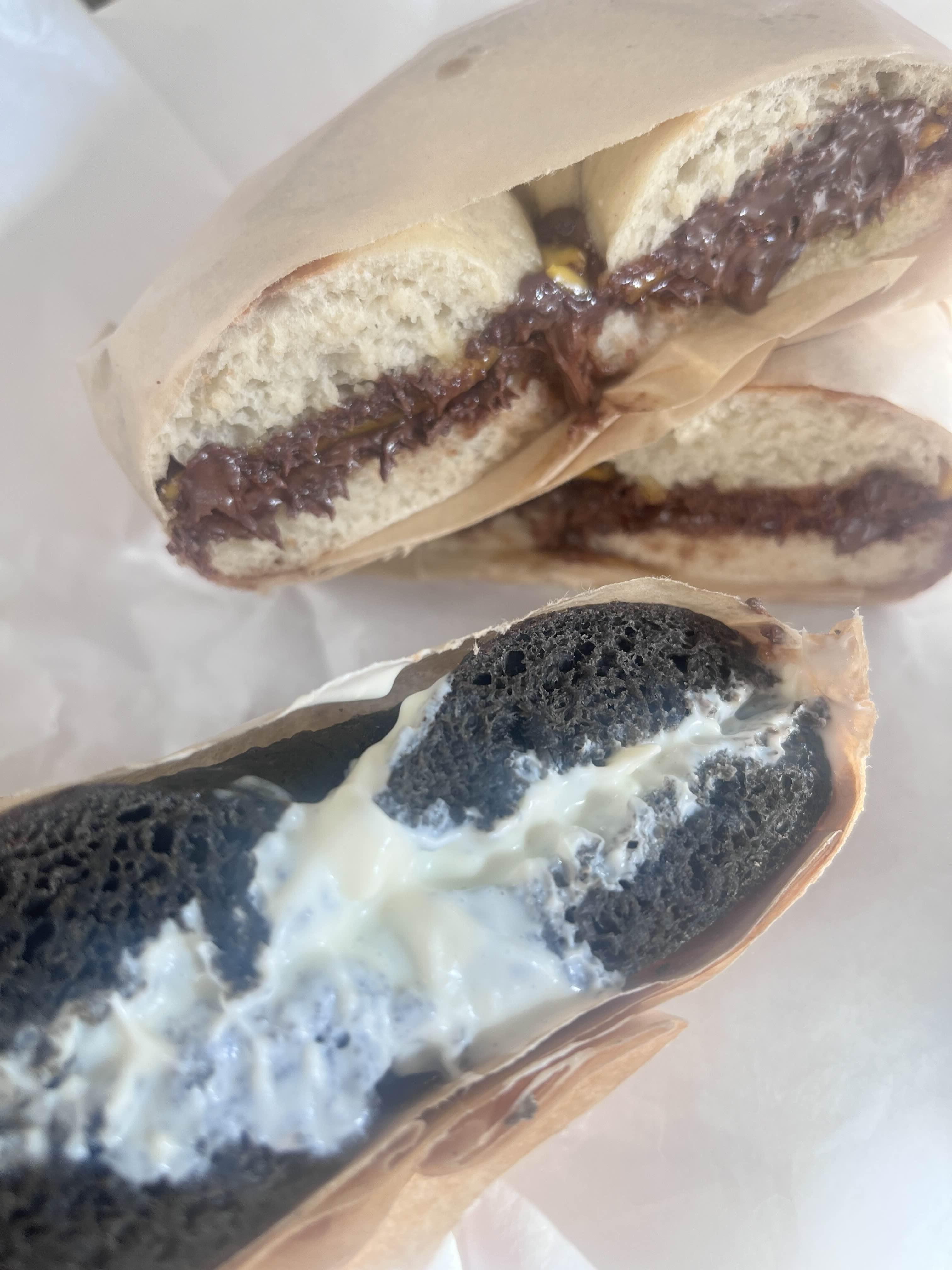 누텔라 베이글에는 체다 치즈랑 누텔라 스프레드가 듬뿍 들어가요 :)