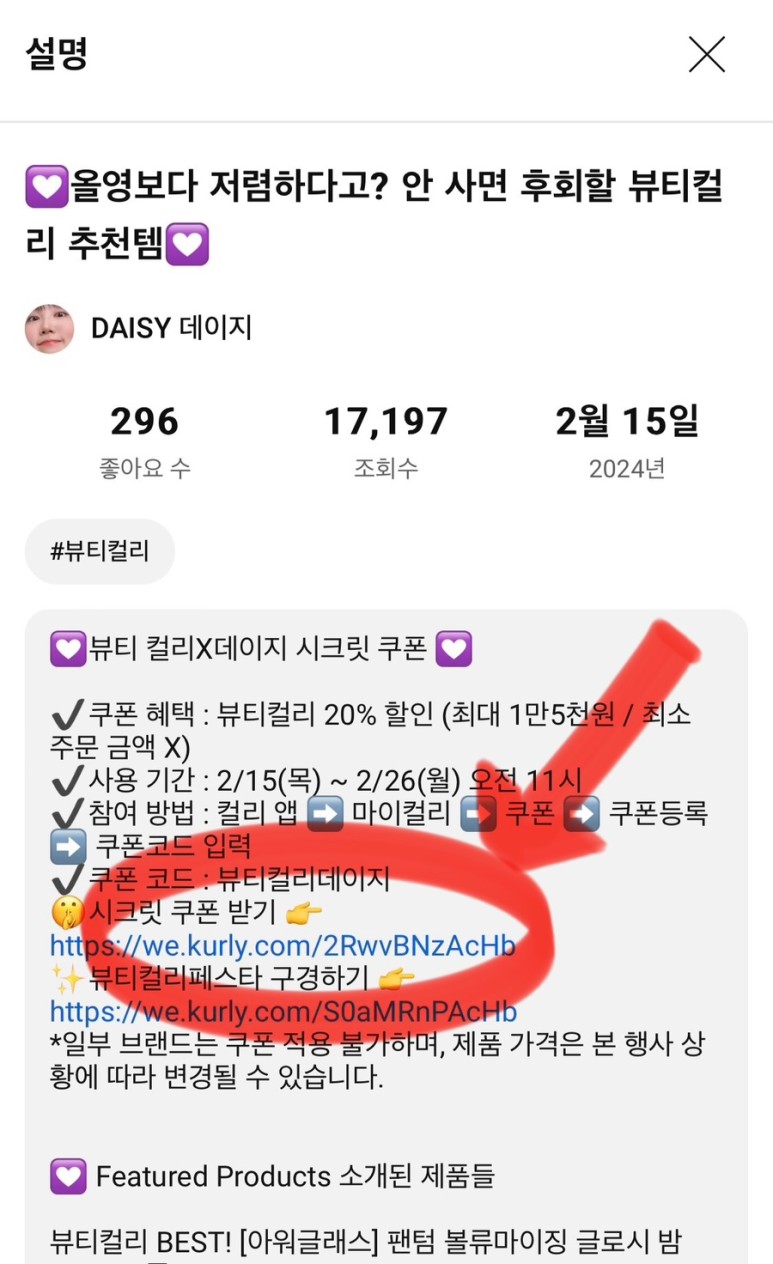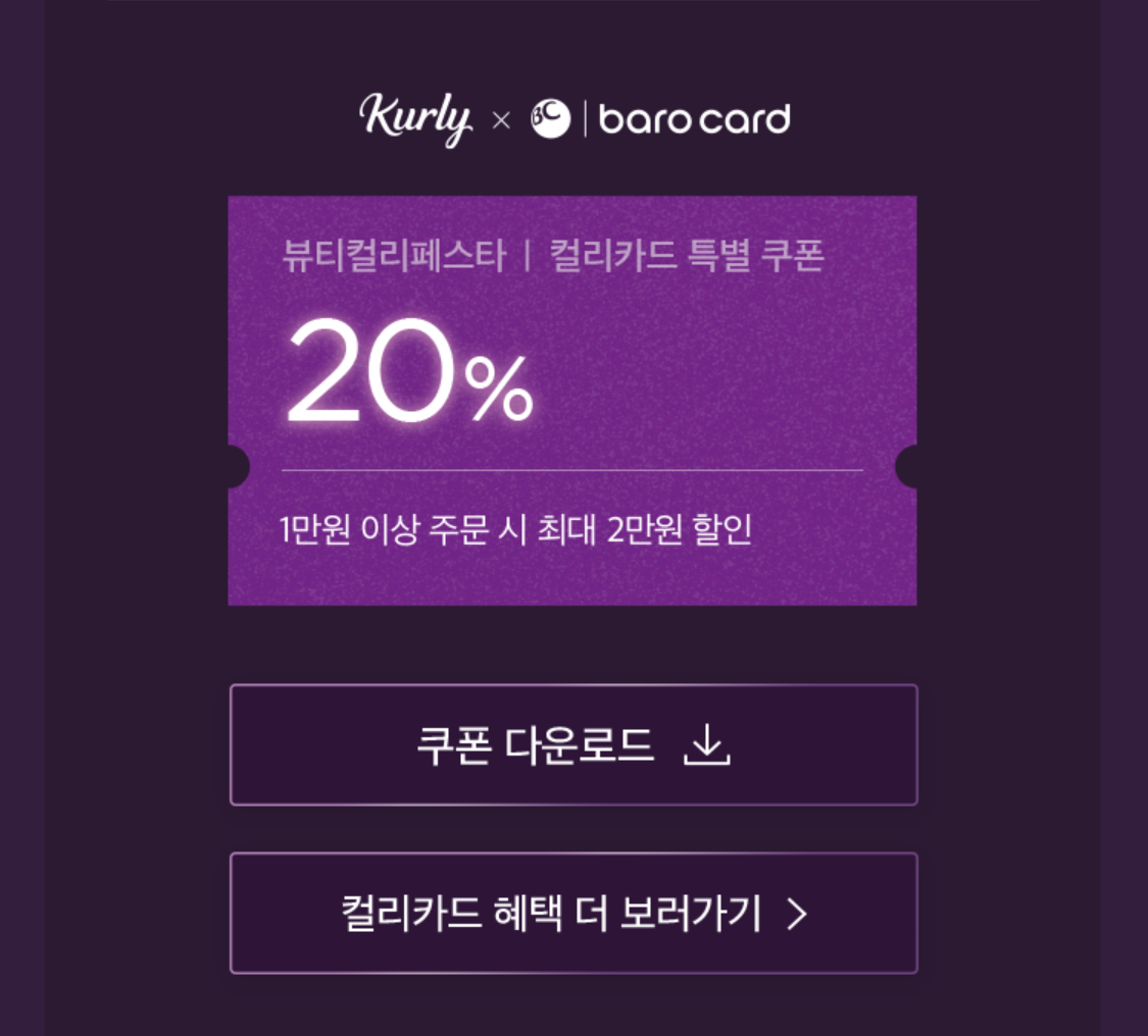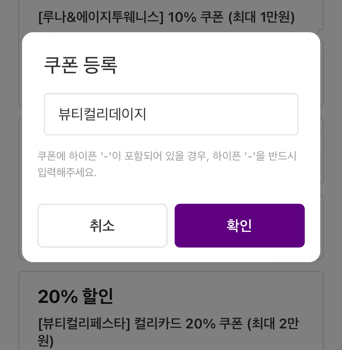 20% 할인 [뷰티컬리✖️데이지] 20% 쿠폰을 볼 수 있으실 거예요.