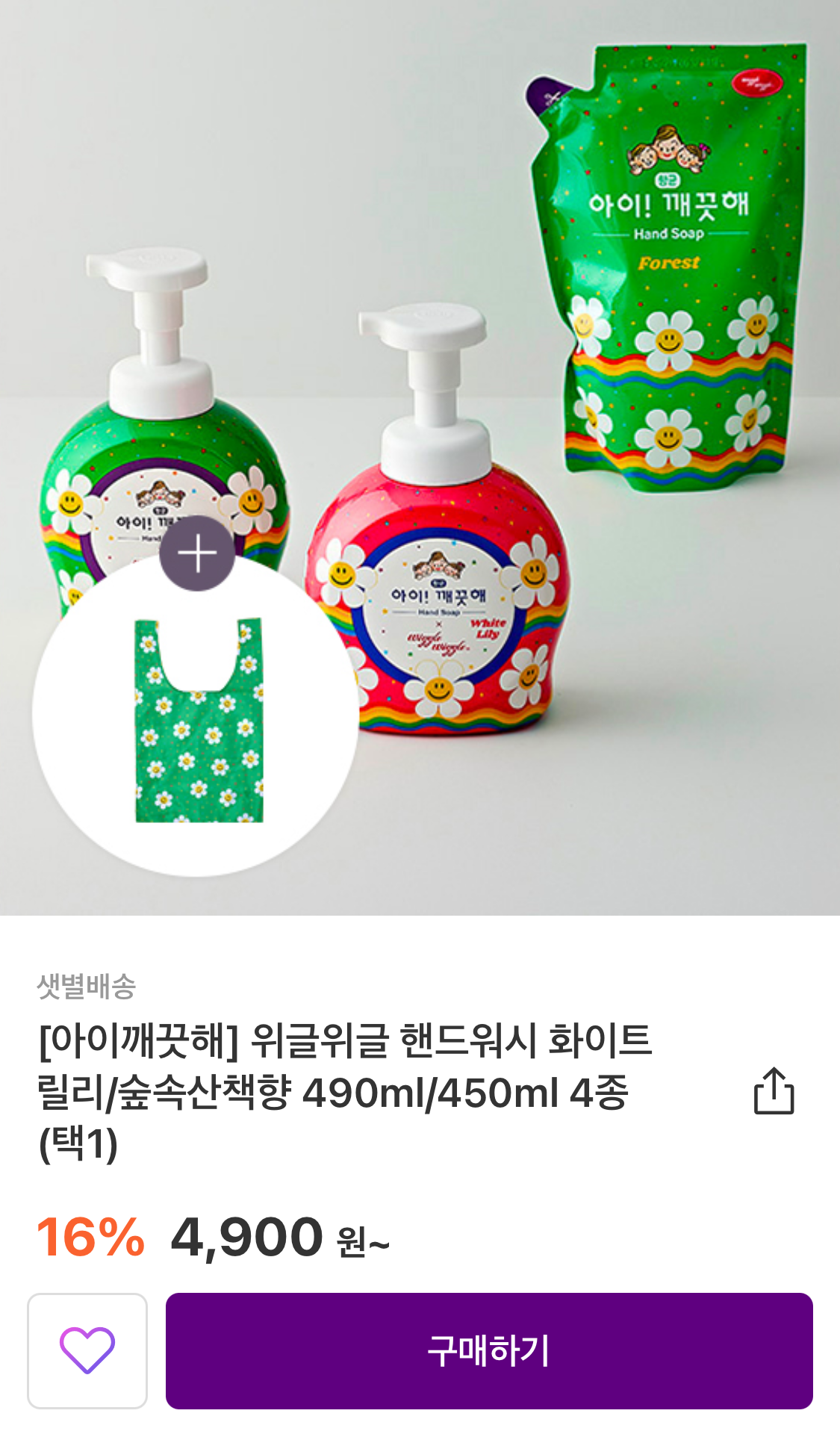 제가 좋아하는 위글위글에서 아이깨끗해랑 콜라보 상품을 만들었네요.