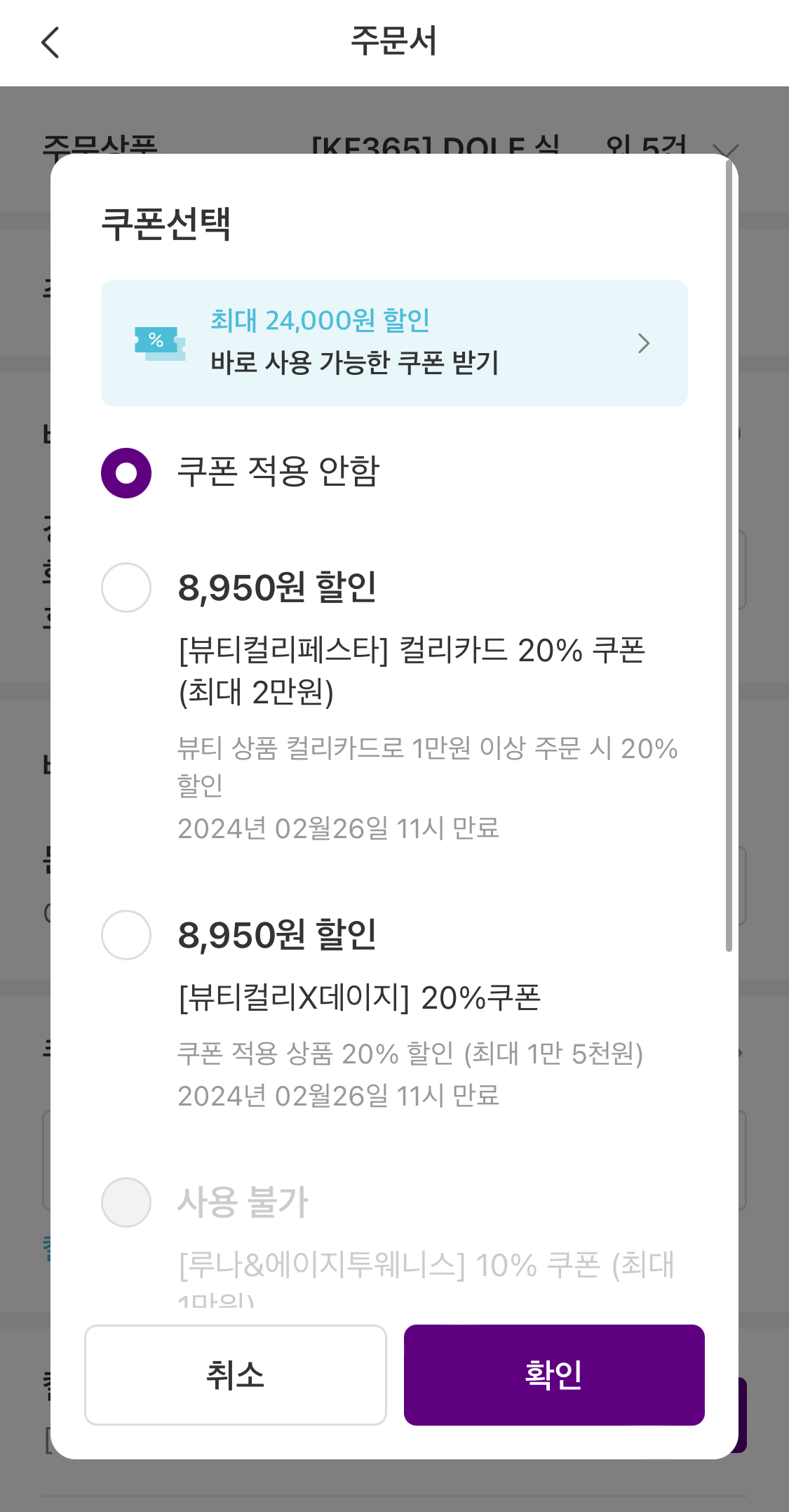 해당 쿠폰 클릭하면 바로 적용됩니다.