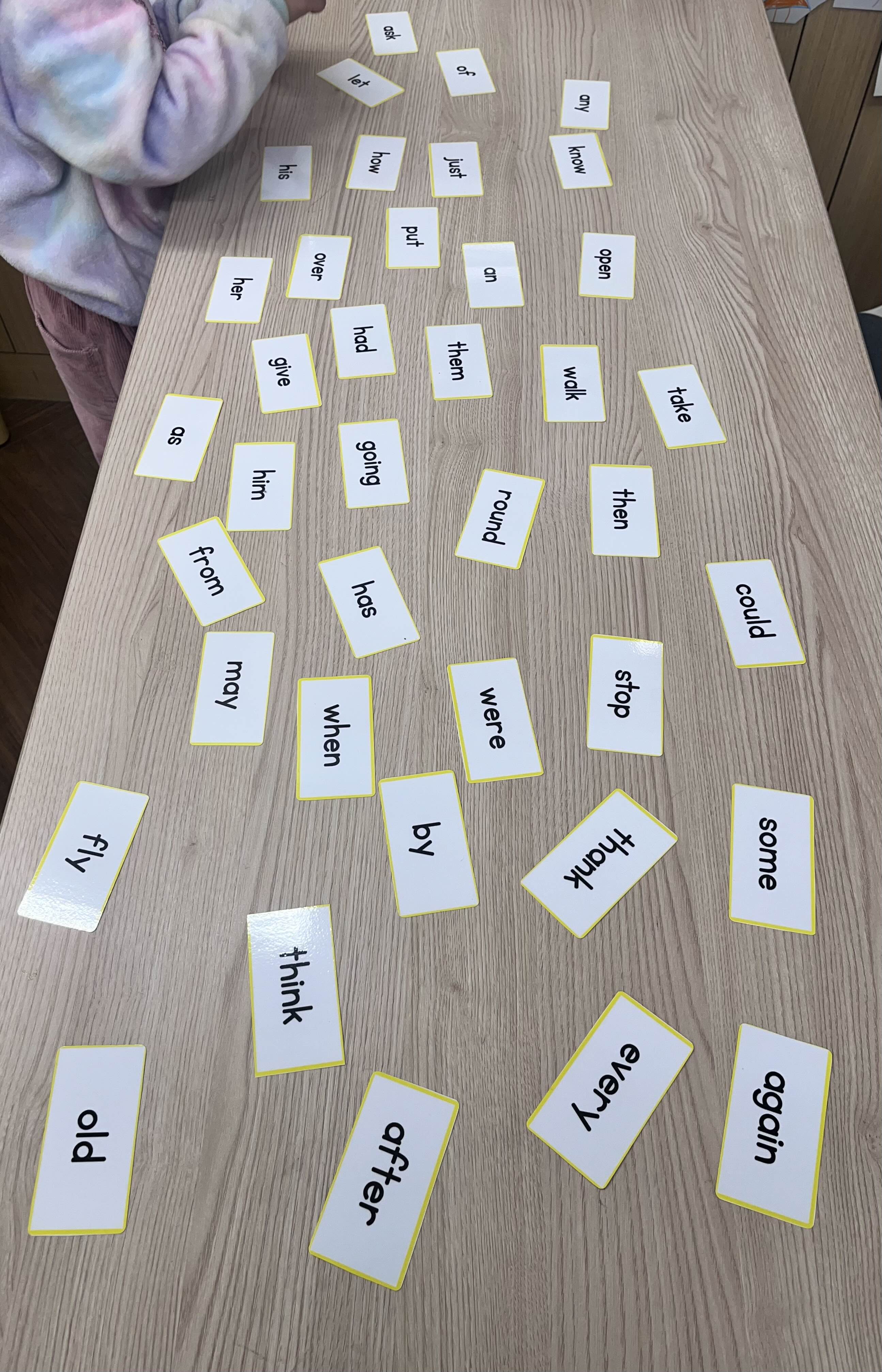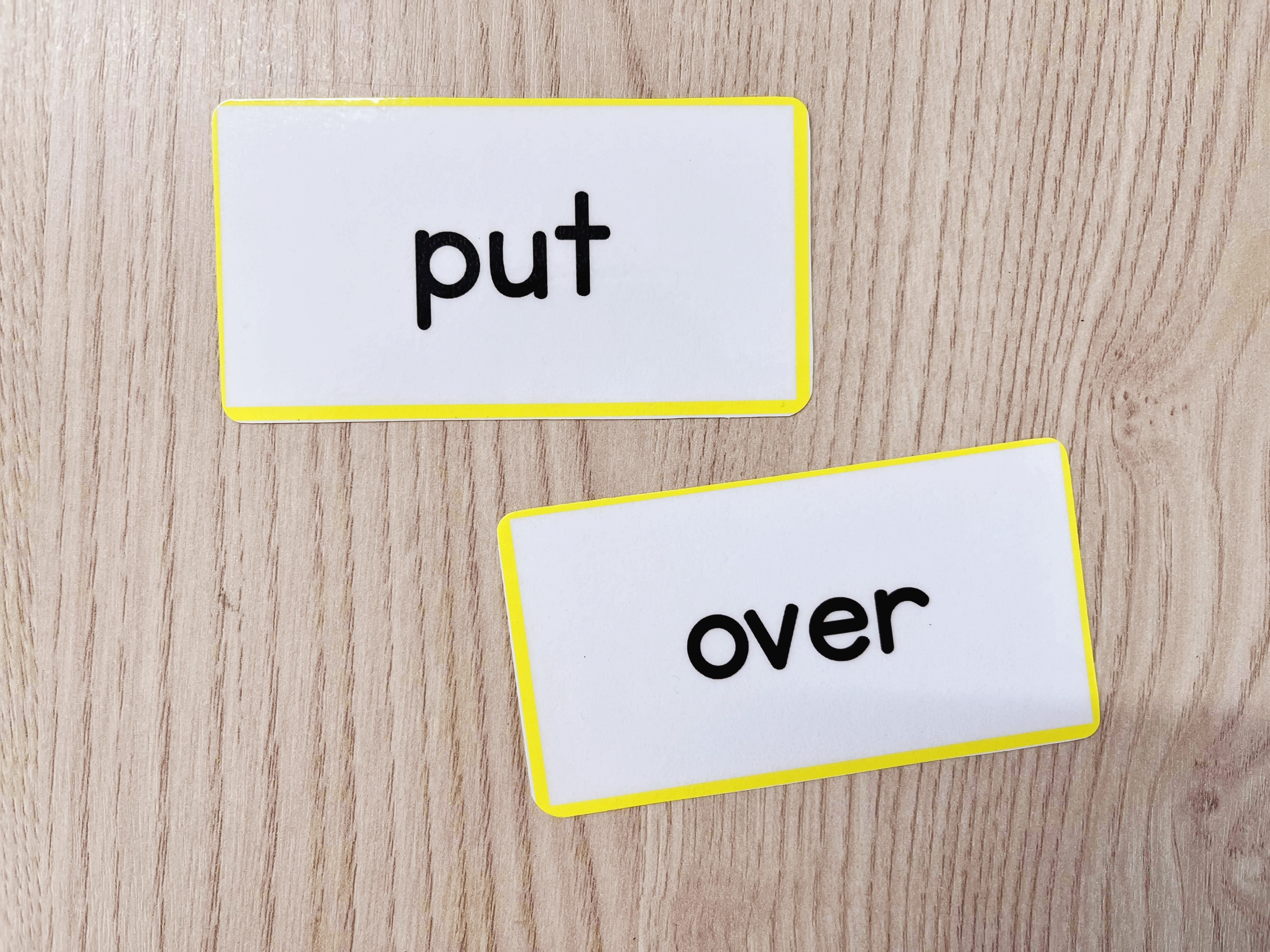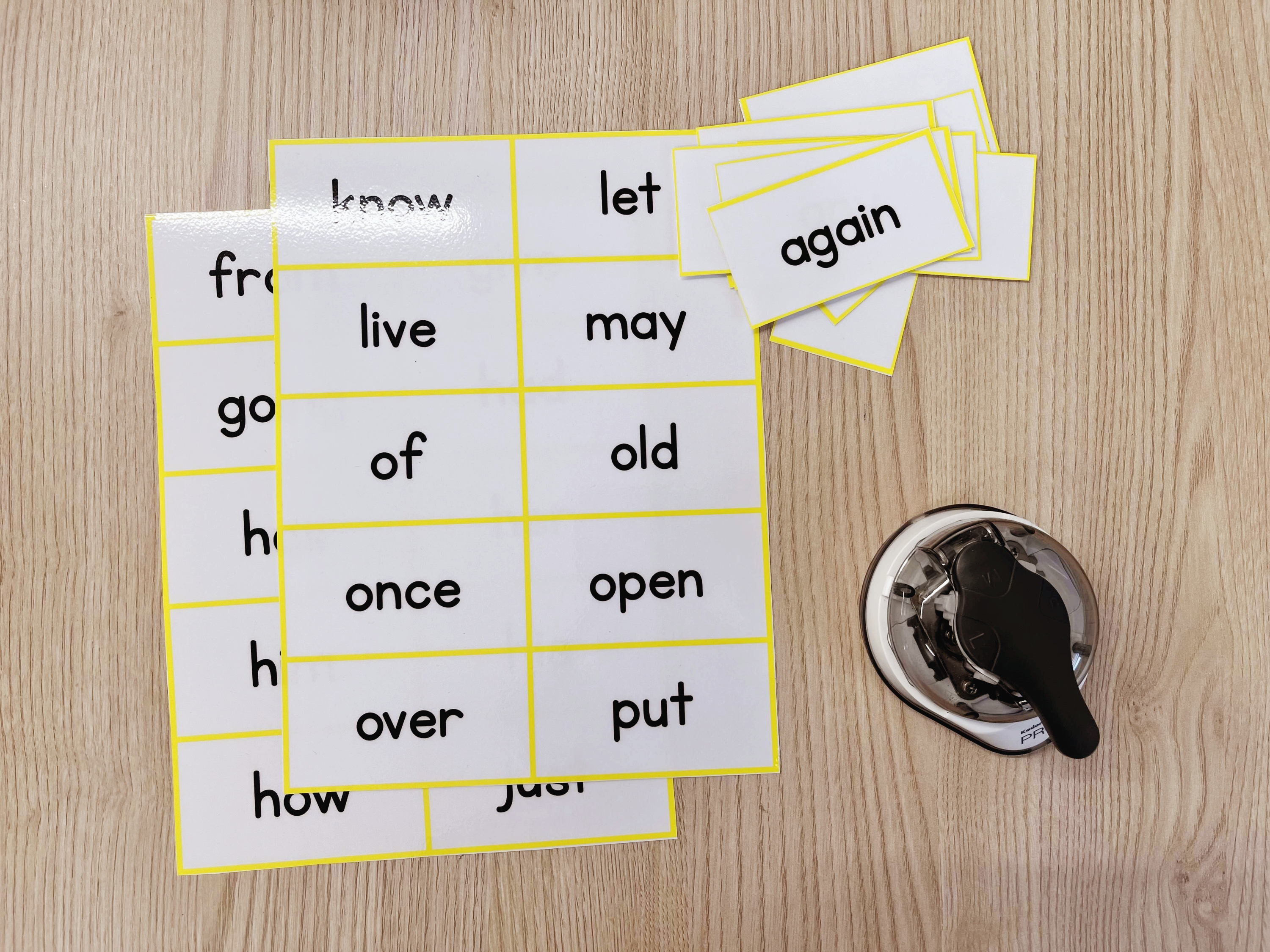 모서리가 깔끔하게 잘 잘린 사이트 워드 플래시 카드들이예요.