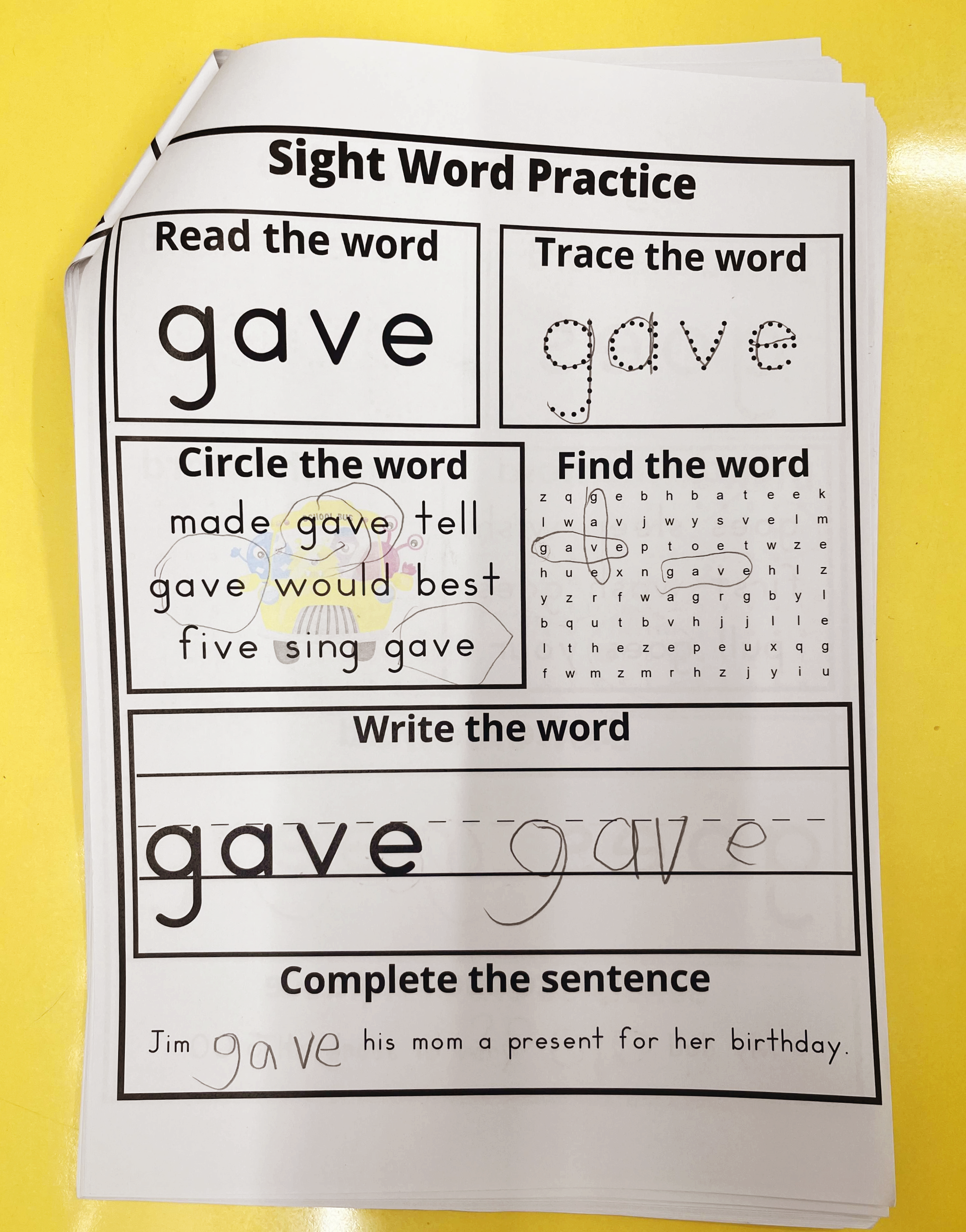 Day 20 gave, goes, green 이 세 단어를 배웠어요.