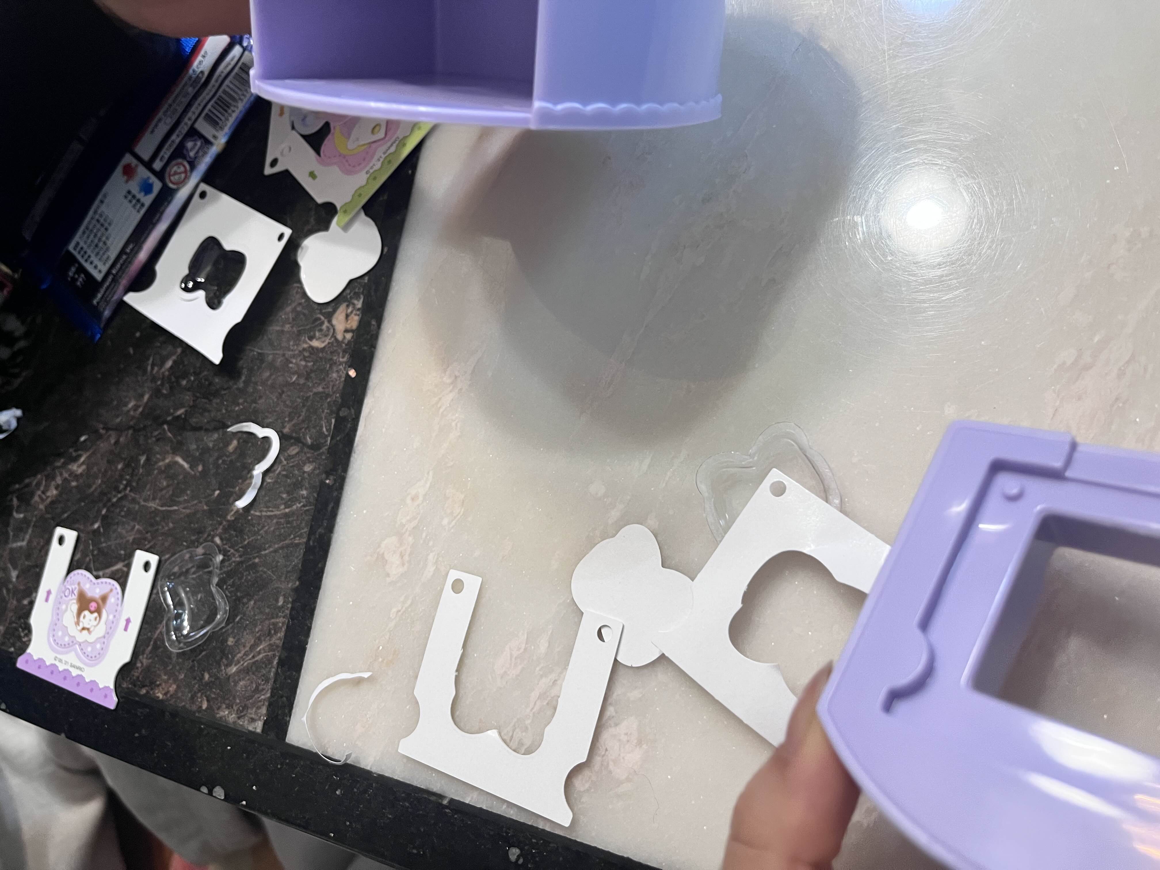 먼저 플라스틱 입체 모양 뒷면 주위에 있는 스티커 보호필름을 떼어 줍니다.