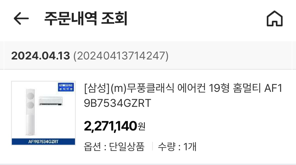 제가 이번에 구매했던 삼성 무풍클래식 에어컨 19형 모델 보여드렸어요.