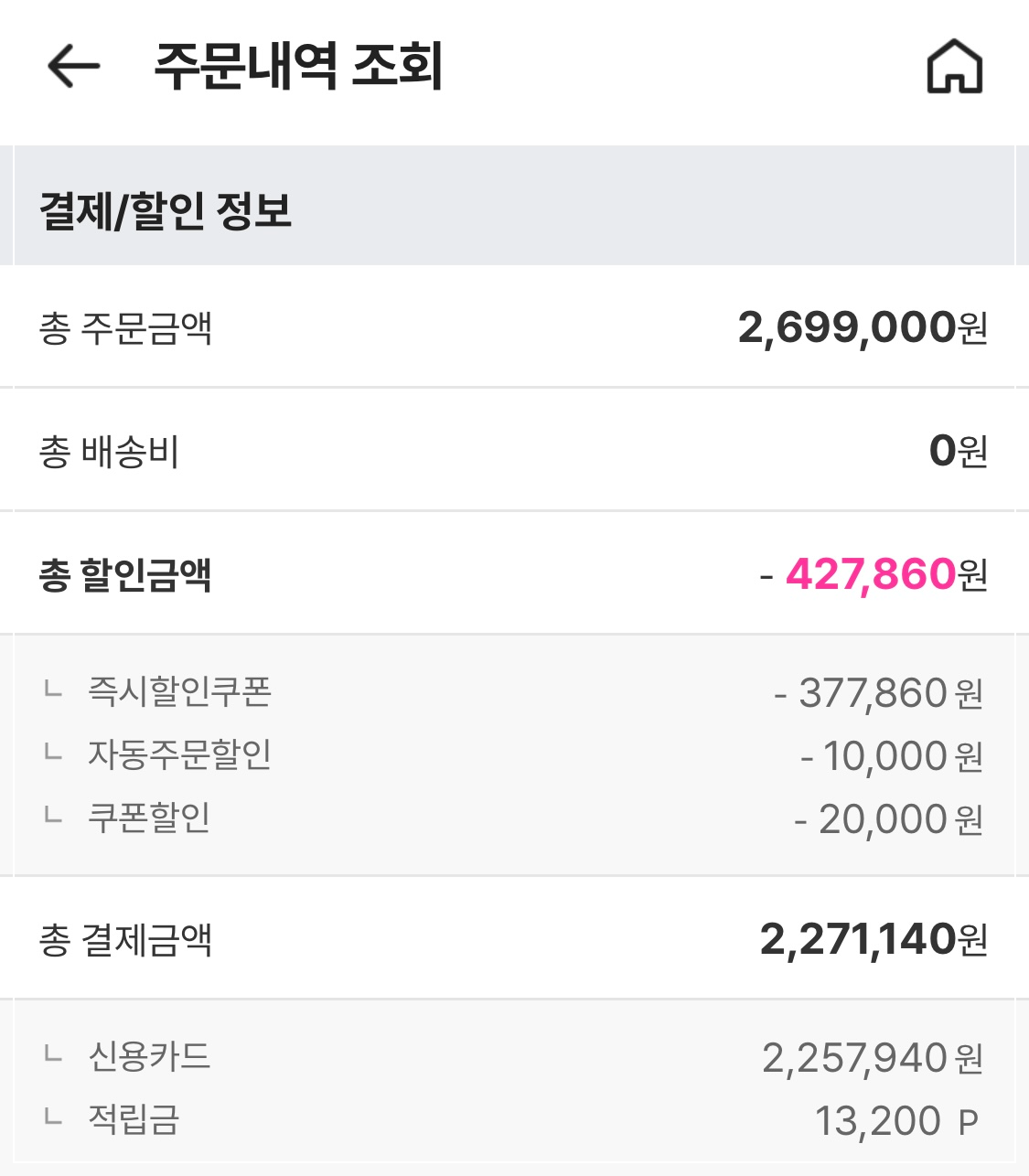 2,699,000원에서 쿠폰이랑 카드할인 받고