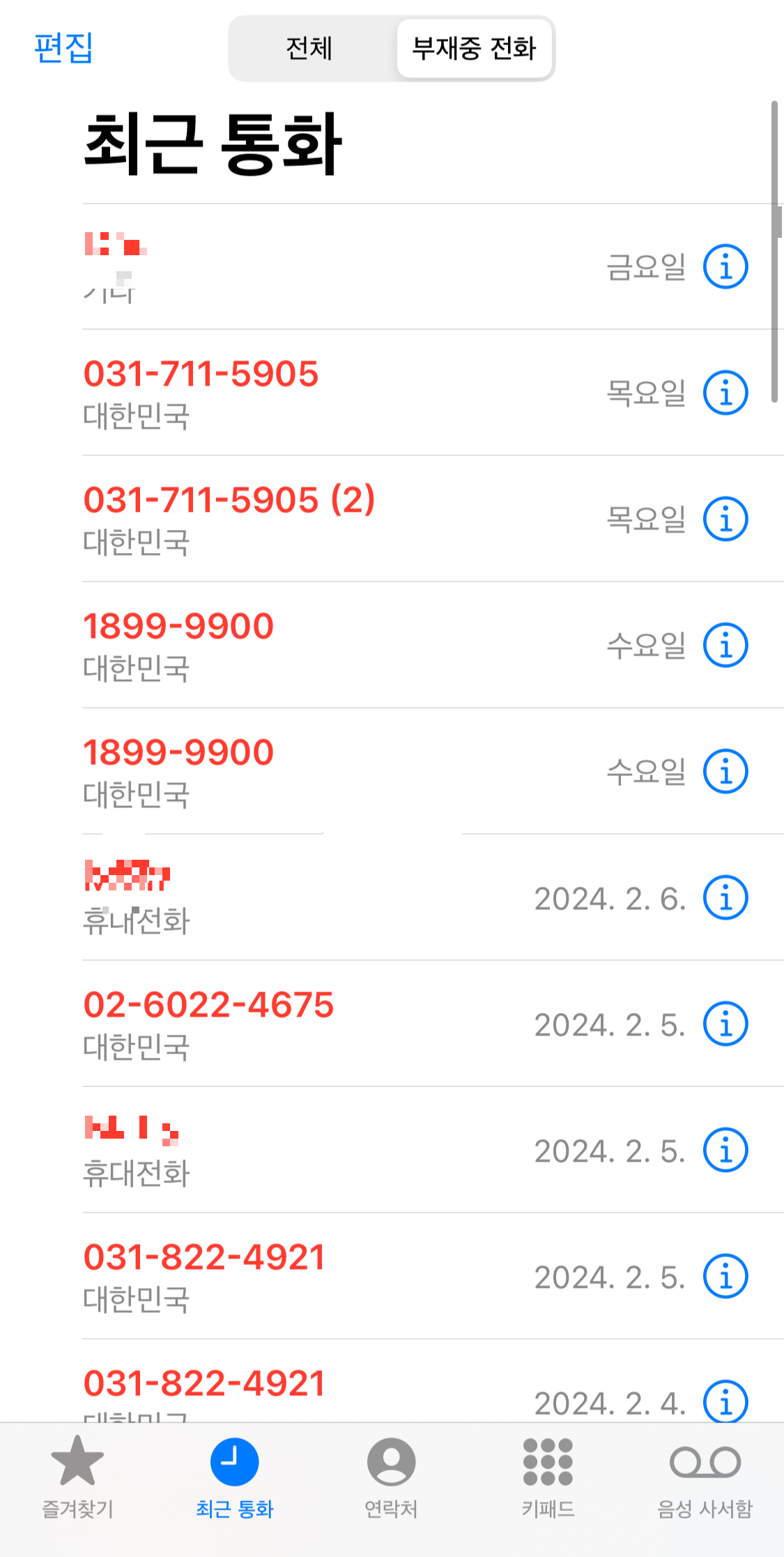 02, 031, 050 등의 모르는 전화번호