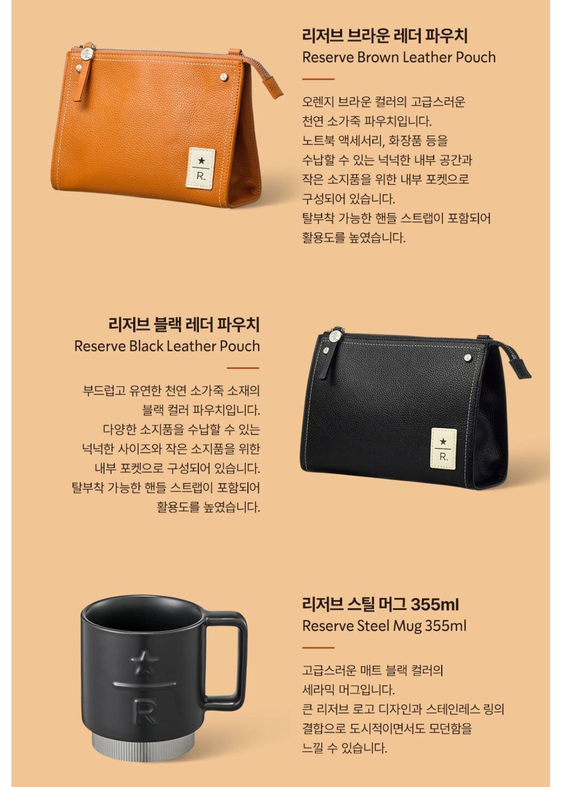저는 24일에 출시되는 <리저브 브라운 레더 파우치>를 갖고 싶어요 :)