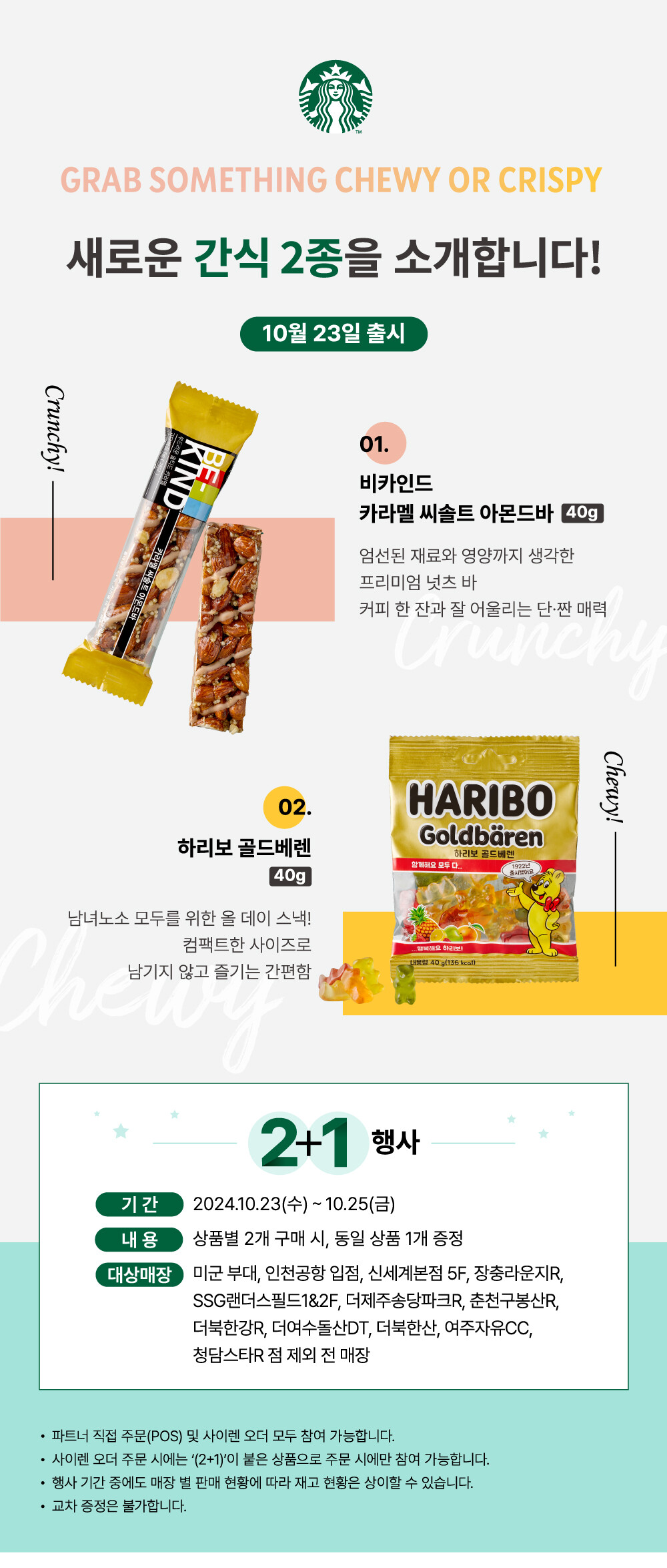 스타벅스에서 비카인드 아몬드바와 하리보를 판매시작했어요.