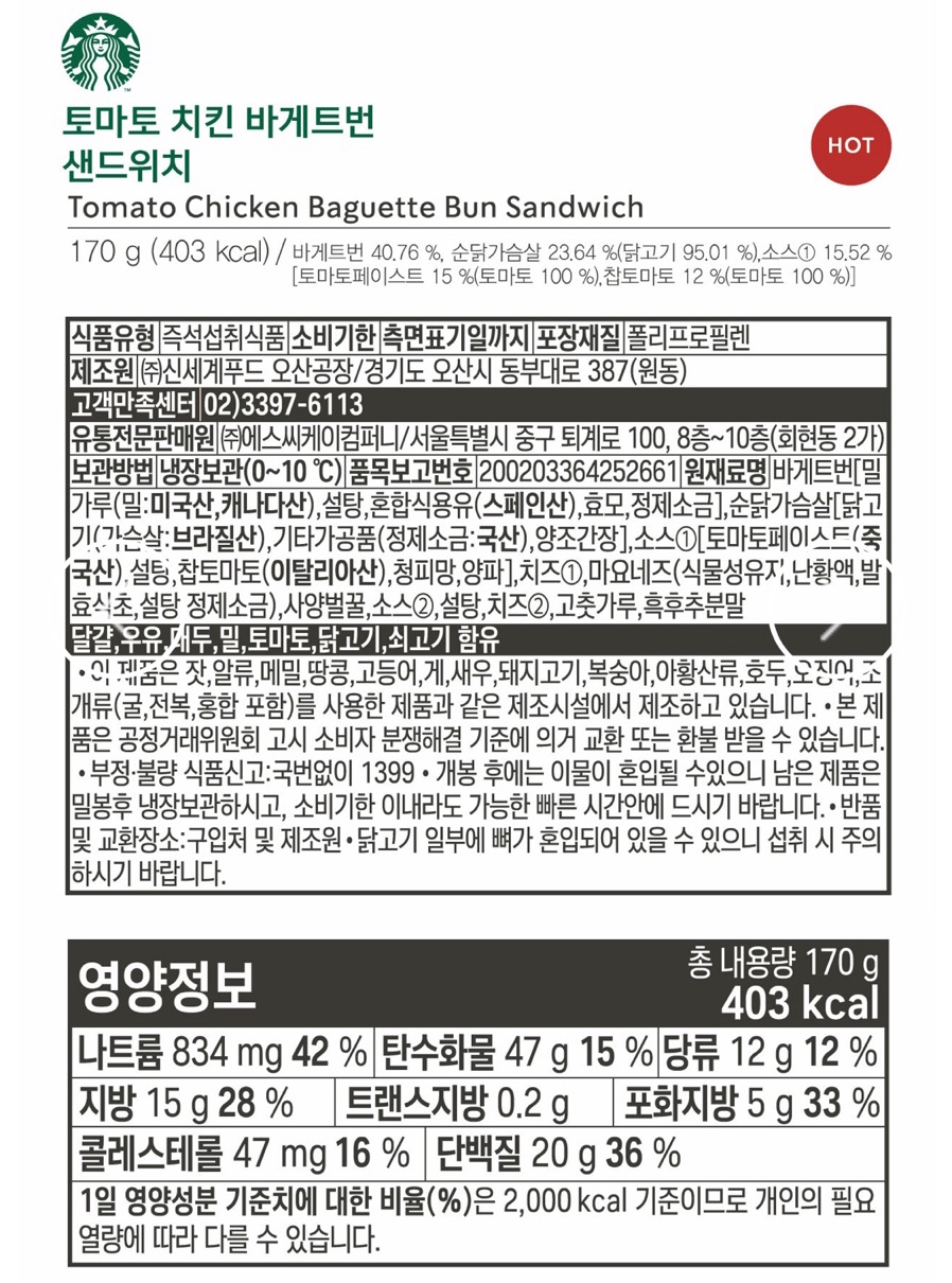 스타벅스 6월 푸드 신메뉴 중 바게트번 샌드위치 2종 보여드렸어요 :)