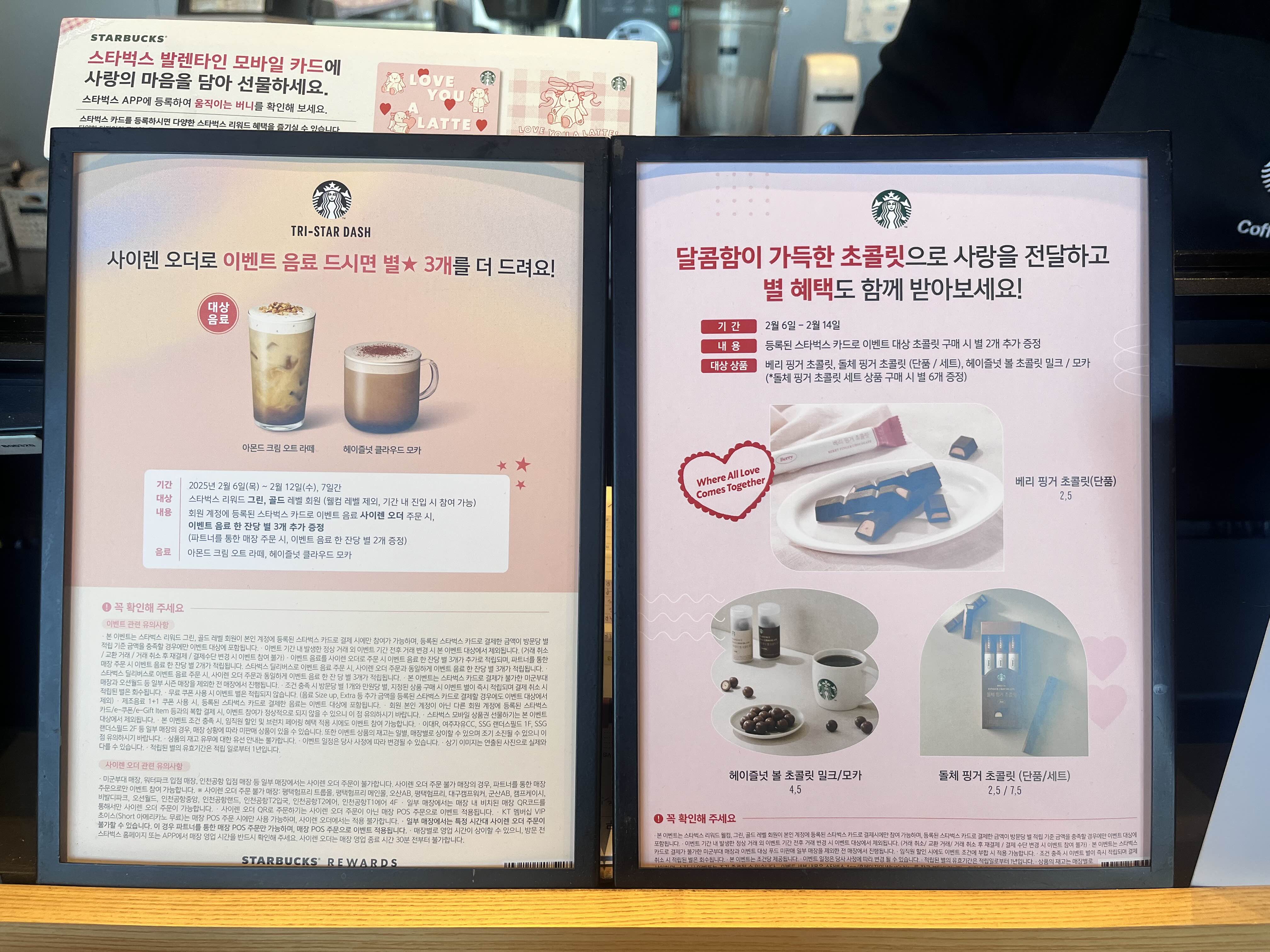 ✔ 스타벅스 카드 이벤트: 스타벅스 계정에 등록된 카드로 초콜릿을 구매하면 별 2개가 추가 적립된다고 해요. 2월 6일부터 14일까지 진행되는 이벤트라니, 관심 있는 분들은 확인해보세요!