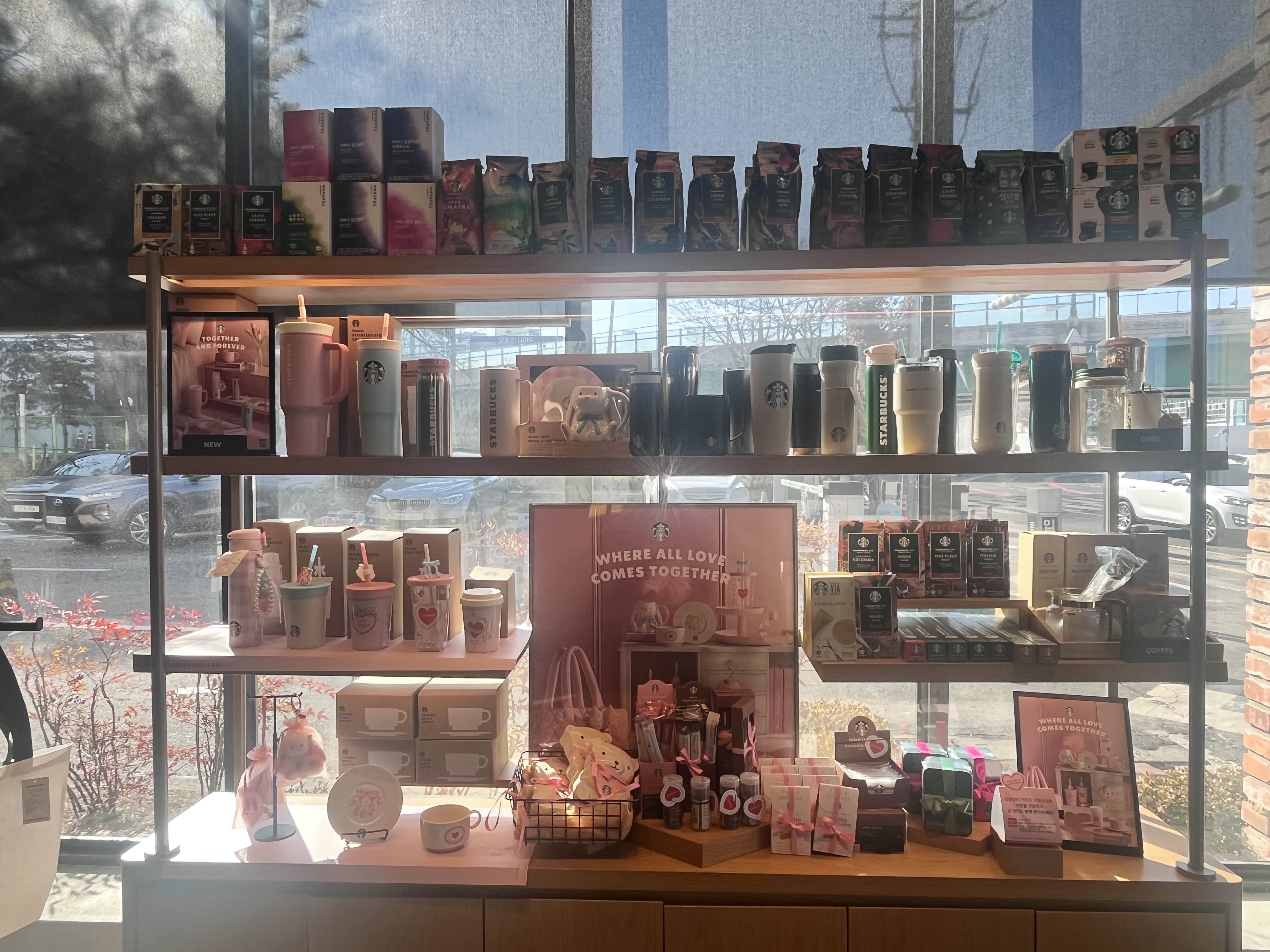 매장 입구부터 사랑스러운 분위기가 물씬~ 발렌타인데이 시즌이 되면 스타벅스 MD는 물론, 한정 메뉴들도 기대되잖아요?