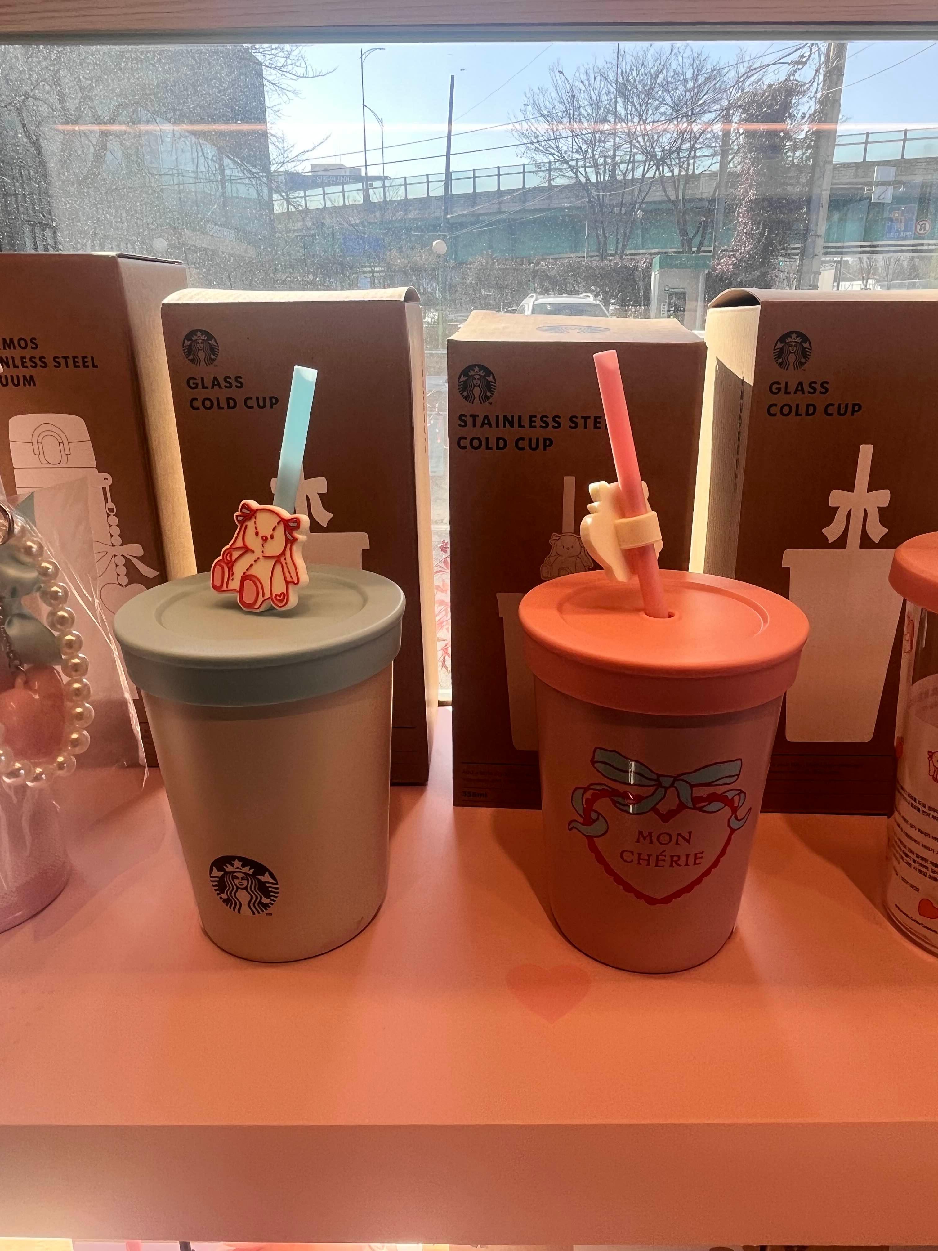 핑크핑크한 감성이 가득한 텀블러와 머그컵도 있었어요. 하지만 집에 아직 개봉도 안 한 머그컵이 너무 많아서 이번엔 그냥 눈으로만 즐겼어요.😆 🍰