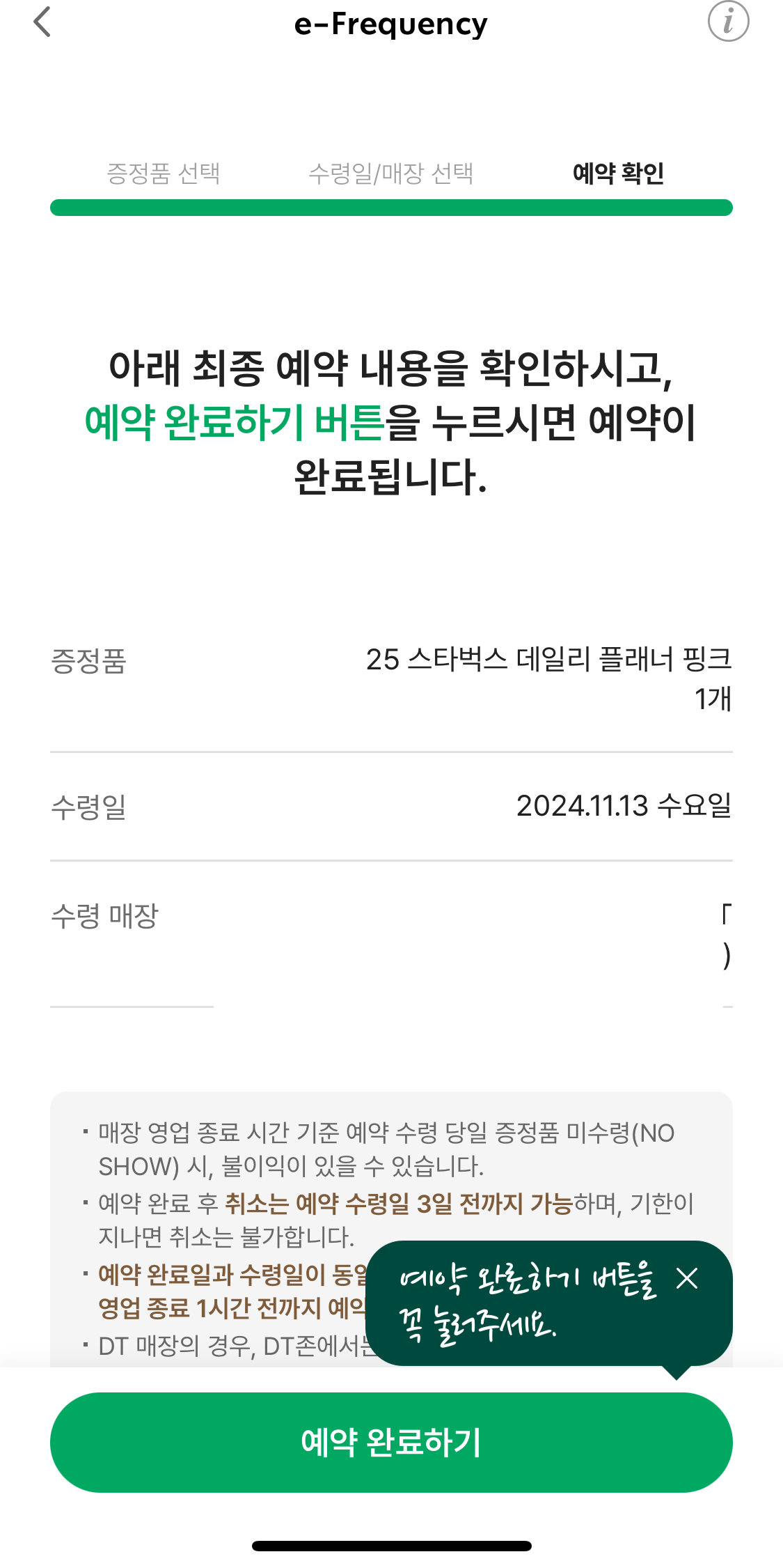 그리고 예약 수령일을 잘 지켜주셔야 하는데,