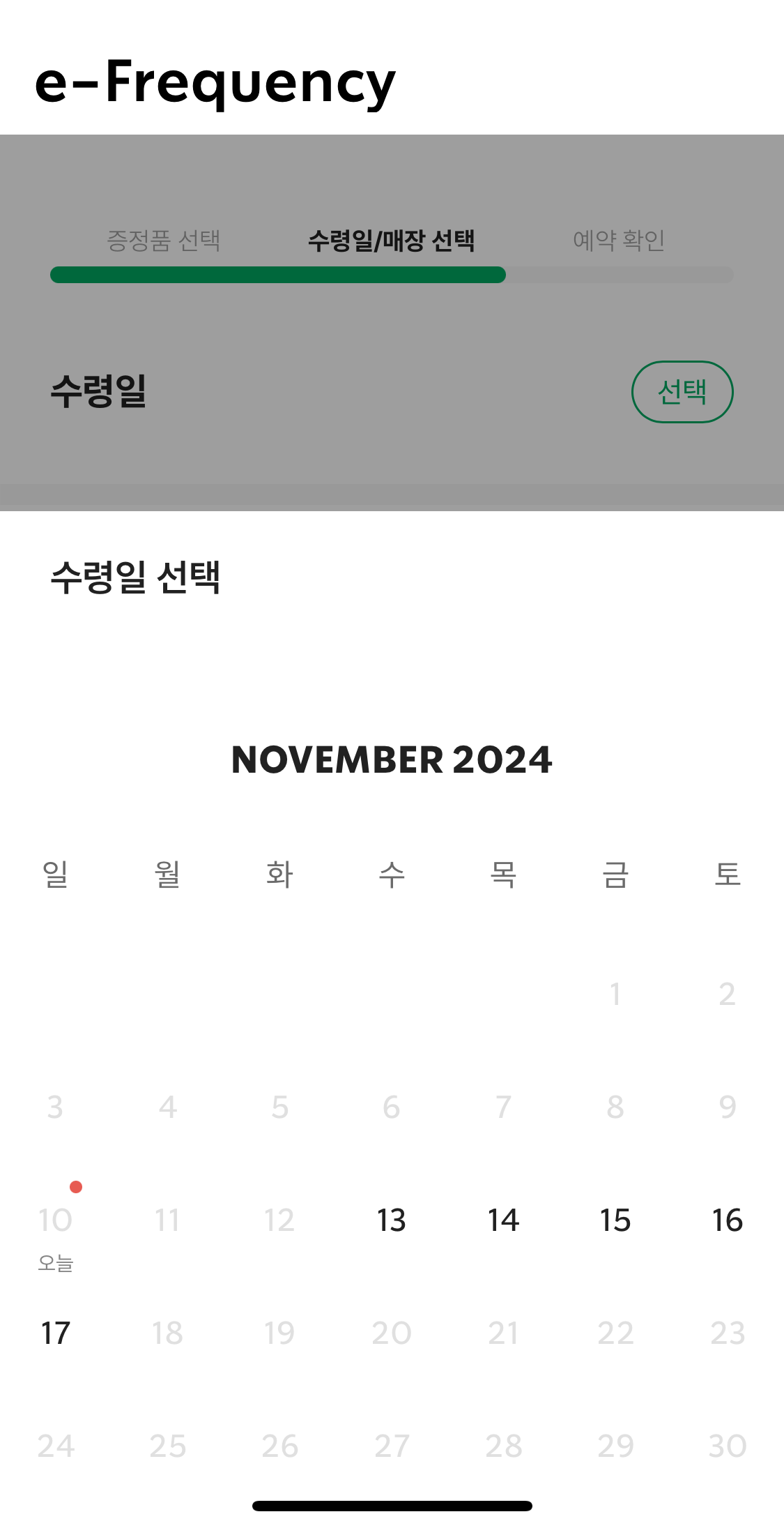 원하는 증정품을 선택하고 수령일과 픽업 매장을 선택하면