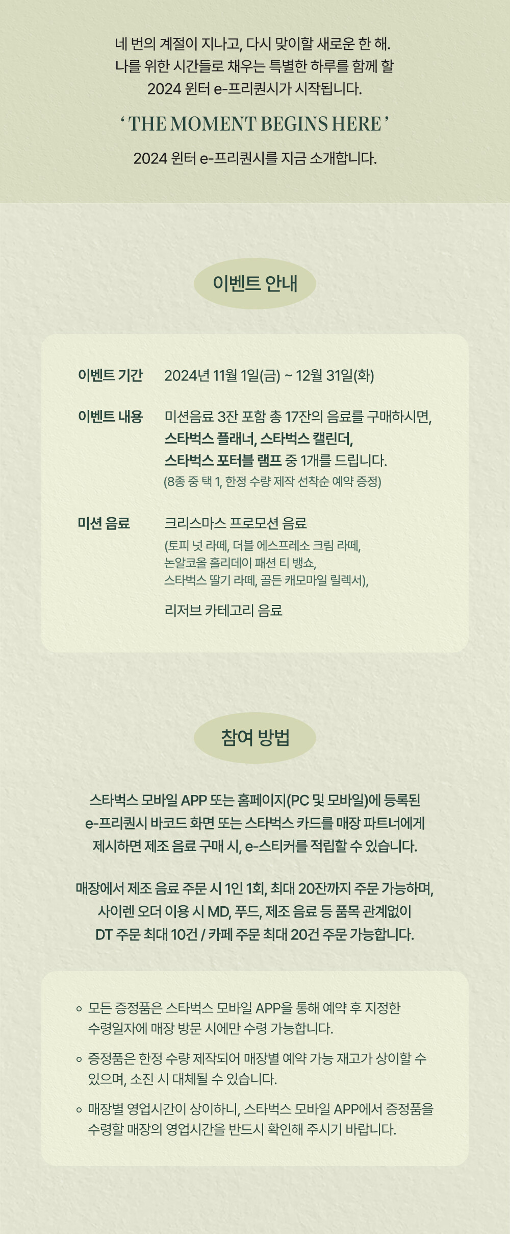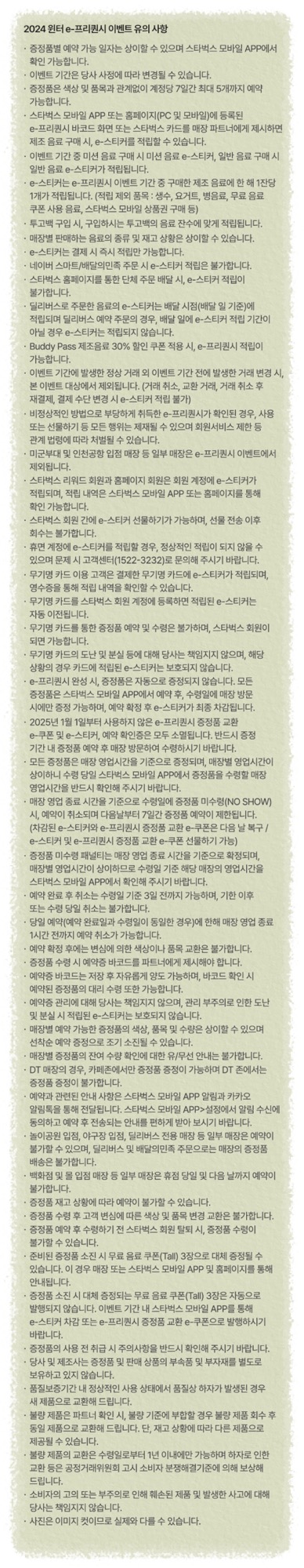 스타벅스의 윈터 e-프리퀀시 이벤트 내용과