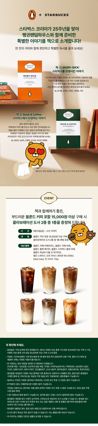 9일부터 시작된 스타벅스 펭귄북스 콜라보 도서 이벤트에 대해 자세히 알려드릴게요! 상당히 기대되는 부분인데요, 이번 이벤트는 책과 커피의 즐거움을 동시에 체험할 수 있는 기회를 제공합니다. 스타벅스에서는 커피를 구매하면 인기 있는 도서를 증정하는 형태로 구성되어 있어요. 이번 협업은 특별히 '펭귄랜덤하우스'와 함께 진행된 거라 더욱 의미가 깊답니다.