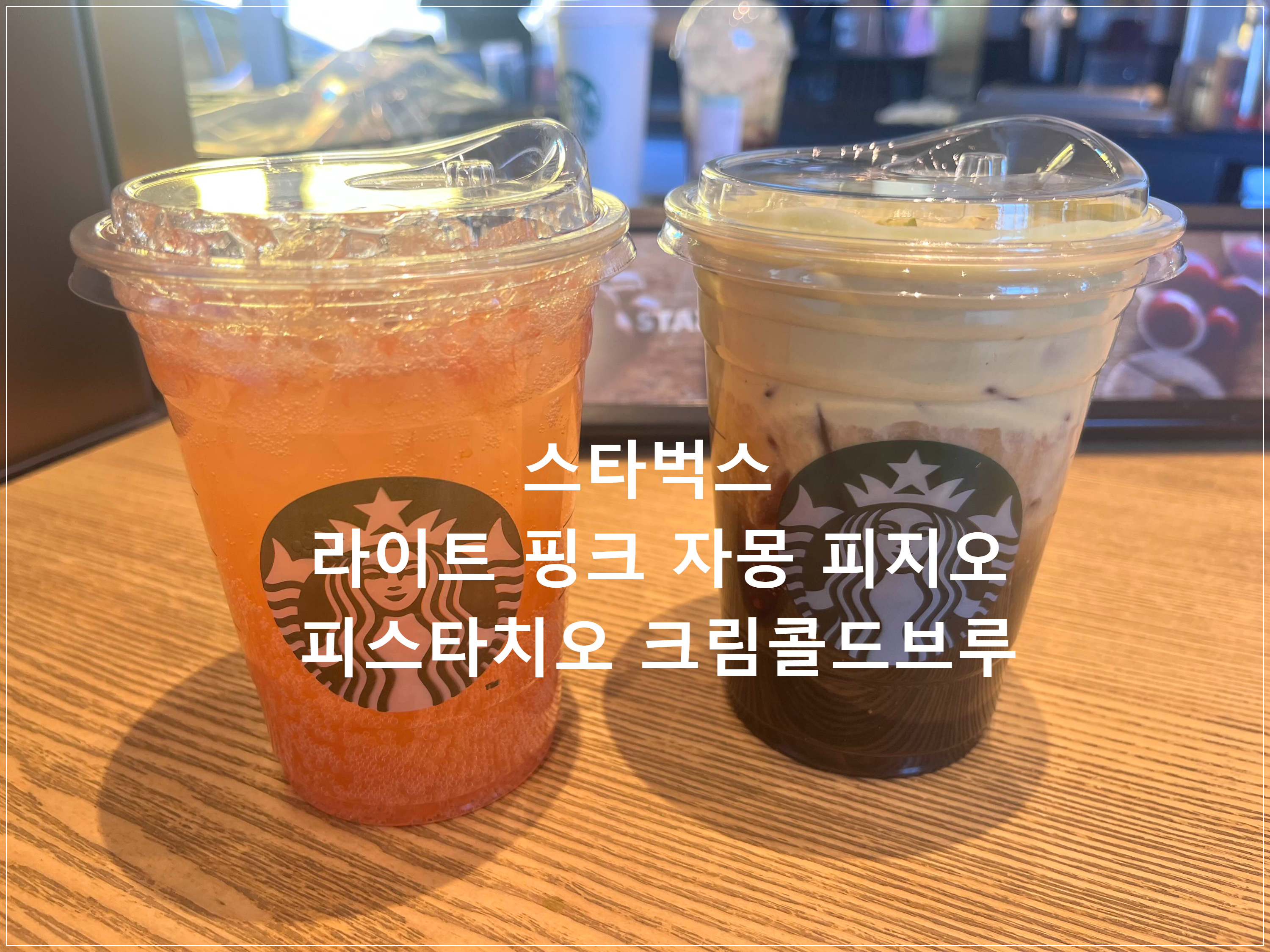 스타벅스 신메뉴 피스타치오 크림 콜드브루와 라이트 핑크자몽 피지오 소개해 드렸어요.