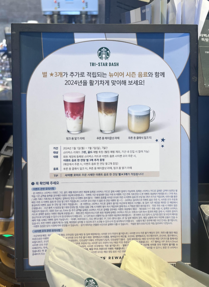 2024년 뉴이어 시즌 음료 3가지를 주문하면