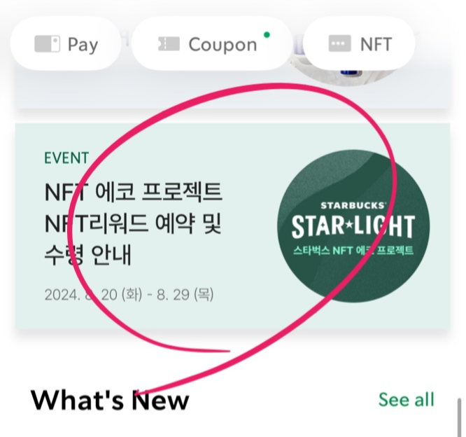 스타벅스 앱 메인 화면에서