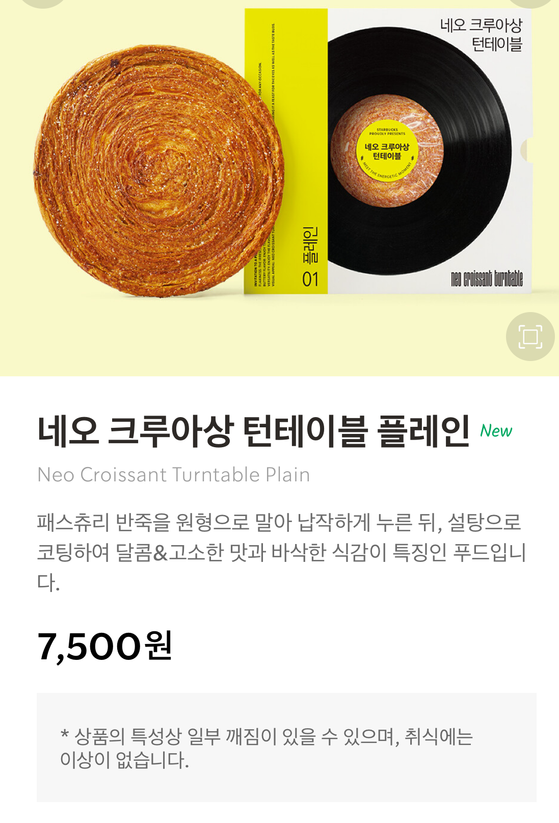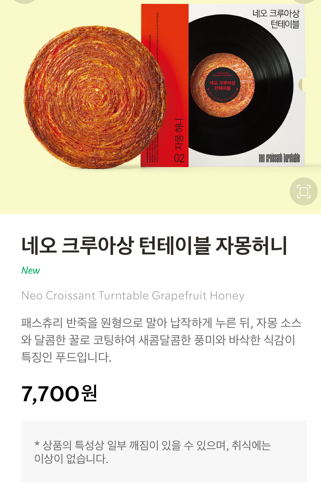 네오 크루아상 턴테이블 플레인과 자몽허니 둘 중 하나를 선택할 수 있어요.