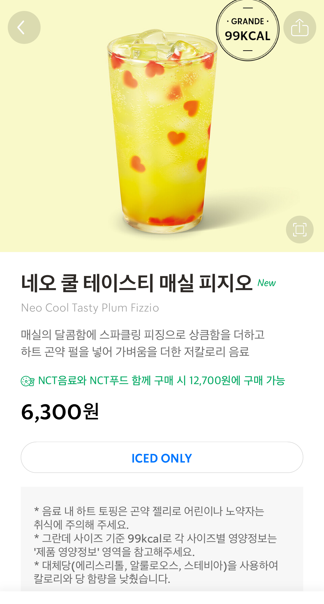 음료는 네오 쿨 테이스티 (NCT) 매실 피지오가 기본이고요