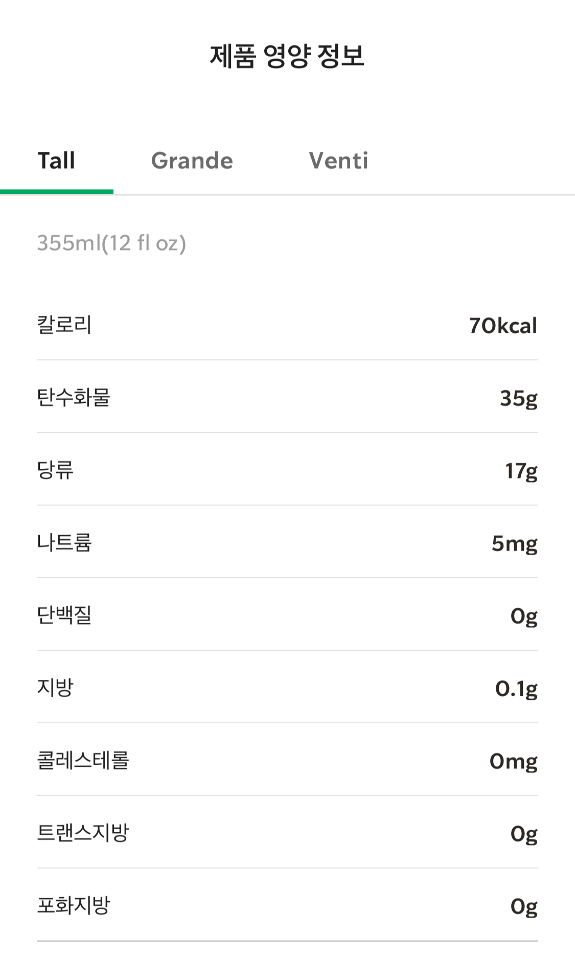 저는 tall 사이즈를 주문했는데 겨우 70kcal!