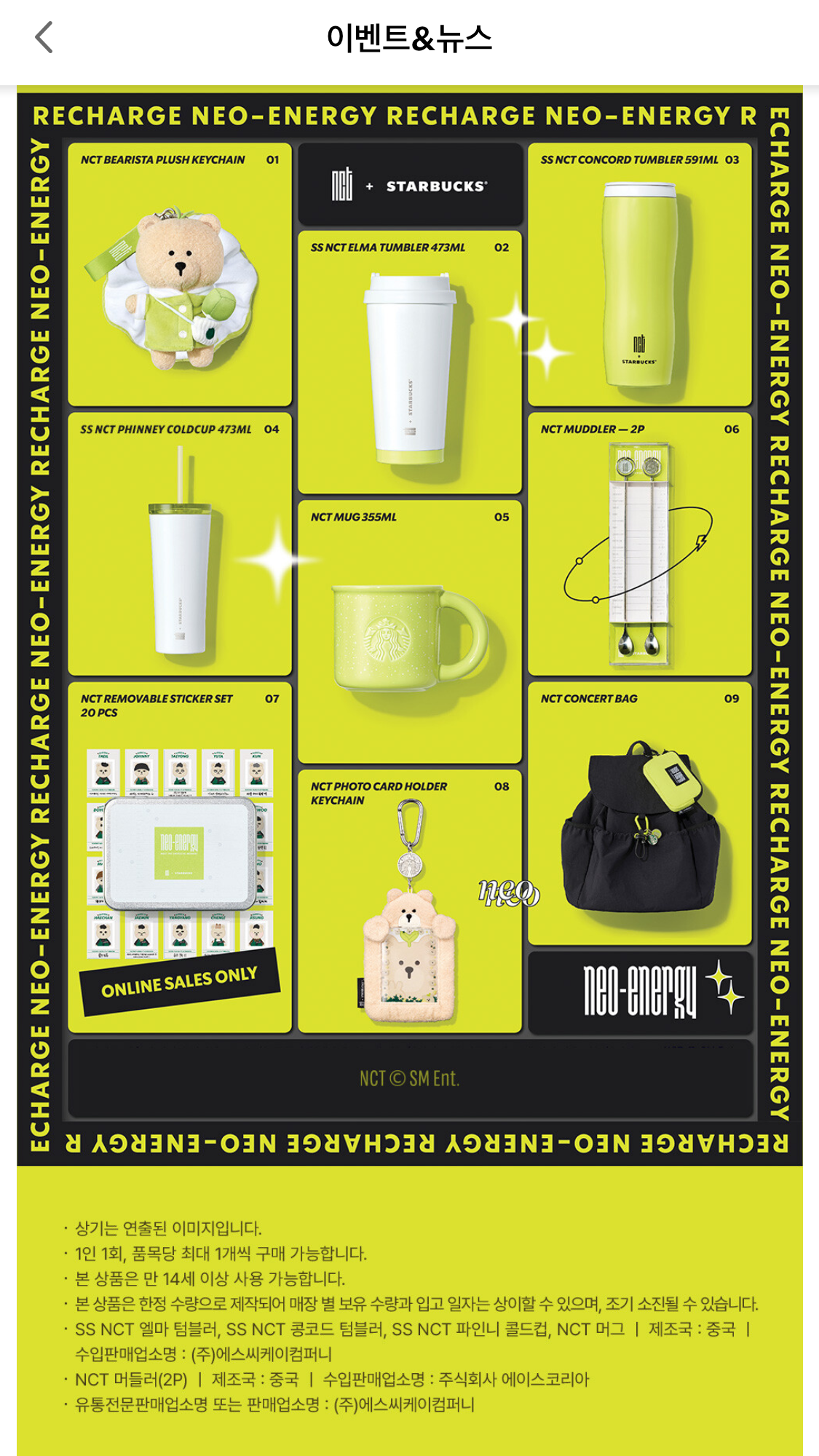 스타벅스xNCT 콜라보 MD 종류, 가격