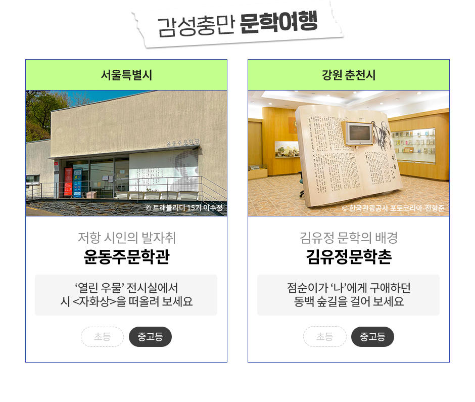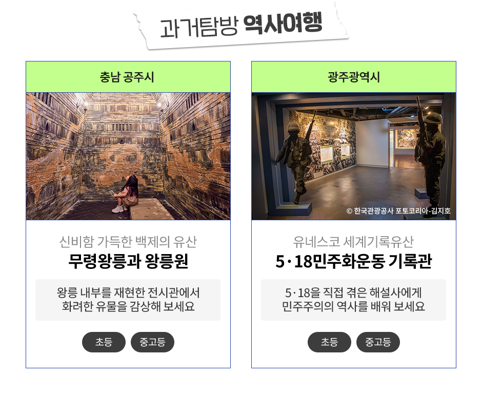 한국광관공사 홈페이지에서 제공하는 국내 교육관광지 18곳을 소개해 드렸어요!
