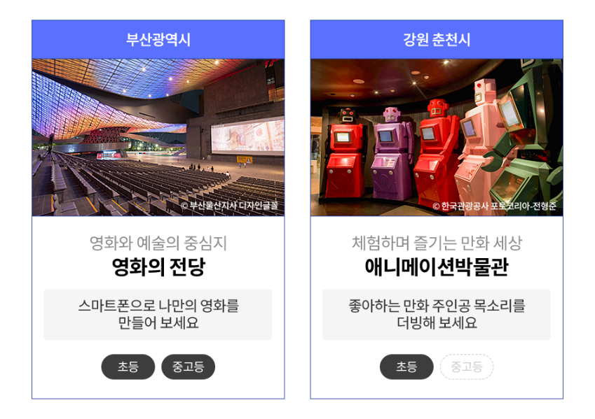- 애니메이션 박물관 (강원 춘천시): https://korean.visitkorea.or.kr/detail/ms_detail.do?cotid=1f91dc19-b946-4f02-8cf3-af09e27a54e0&big_category=A02&mid_category=A0206&big_area=32