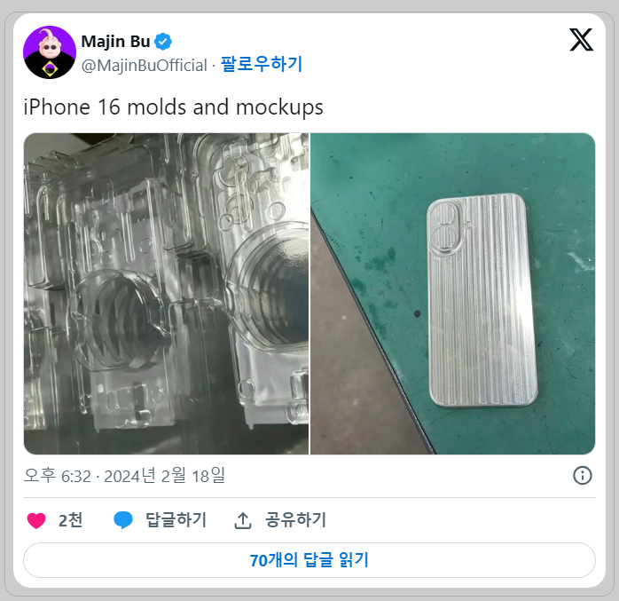 - 후면 카메라: 아이폰 16 기본 모델과 플러스 모델의 후면 카메라는 기존 모델과 달리 수직으로 배열됩니다. 또한, 프로모델에는 잠망경 렌즈가 추가될 것으로 예상됩니다.