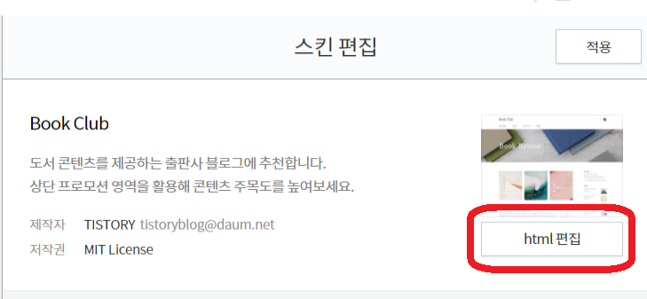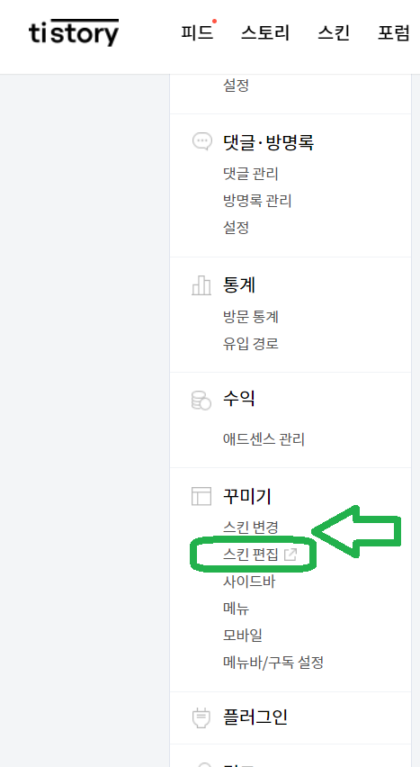 관리 ➡️ 꾸미기 ➡️ 스킨 편집을 선택해주세요.