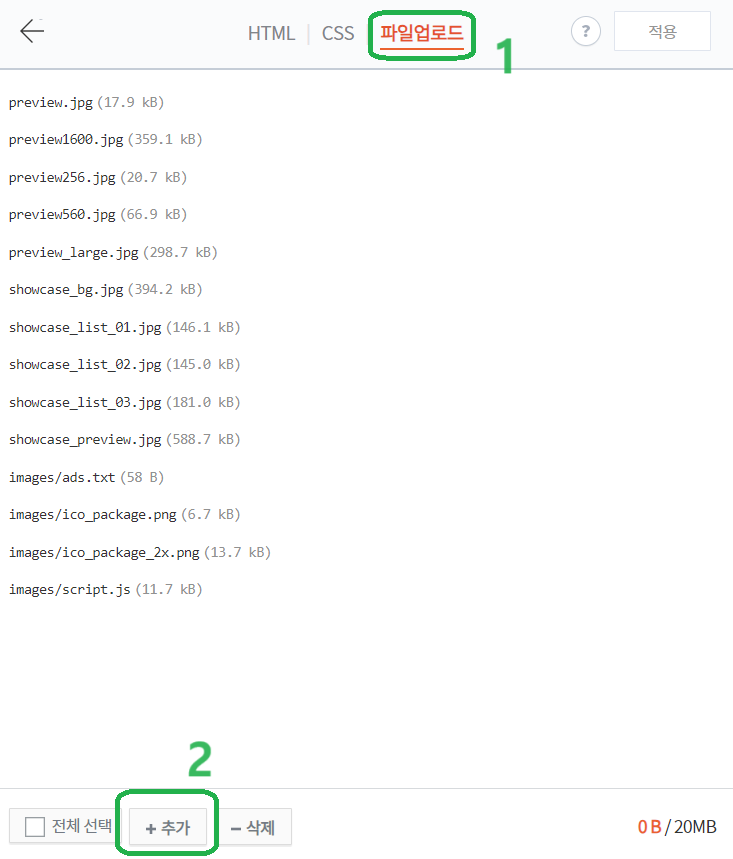 그러면 상단에 아래 사진처럼 상단에 '파일업로드' 가 보이실거예요.