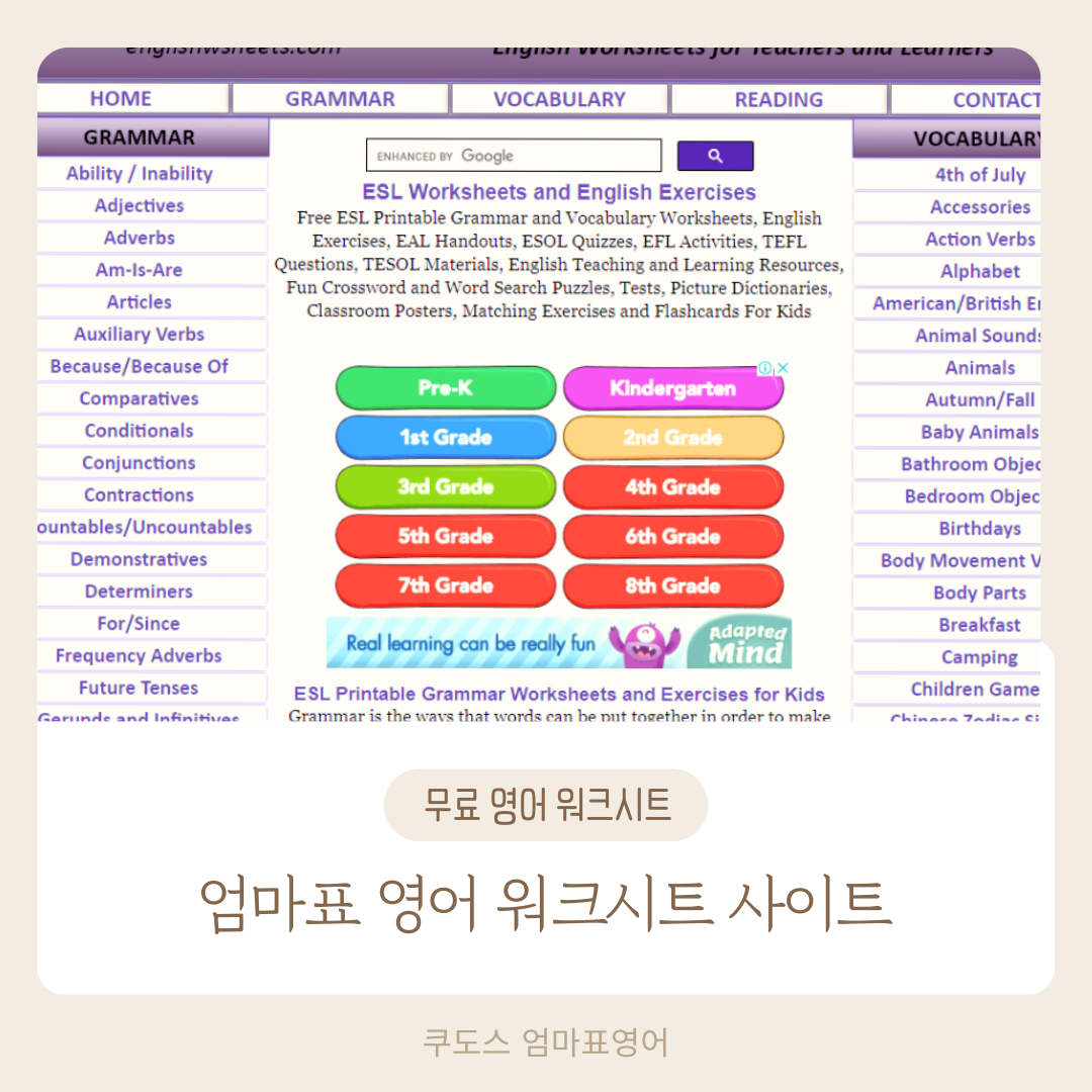 워크시트가 가득한 사이트를 알려드렸습니다.
